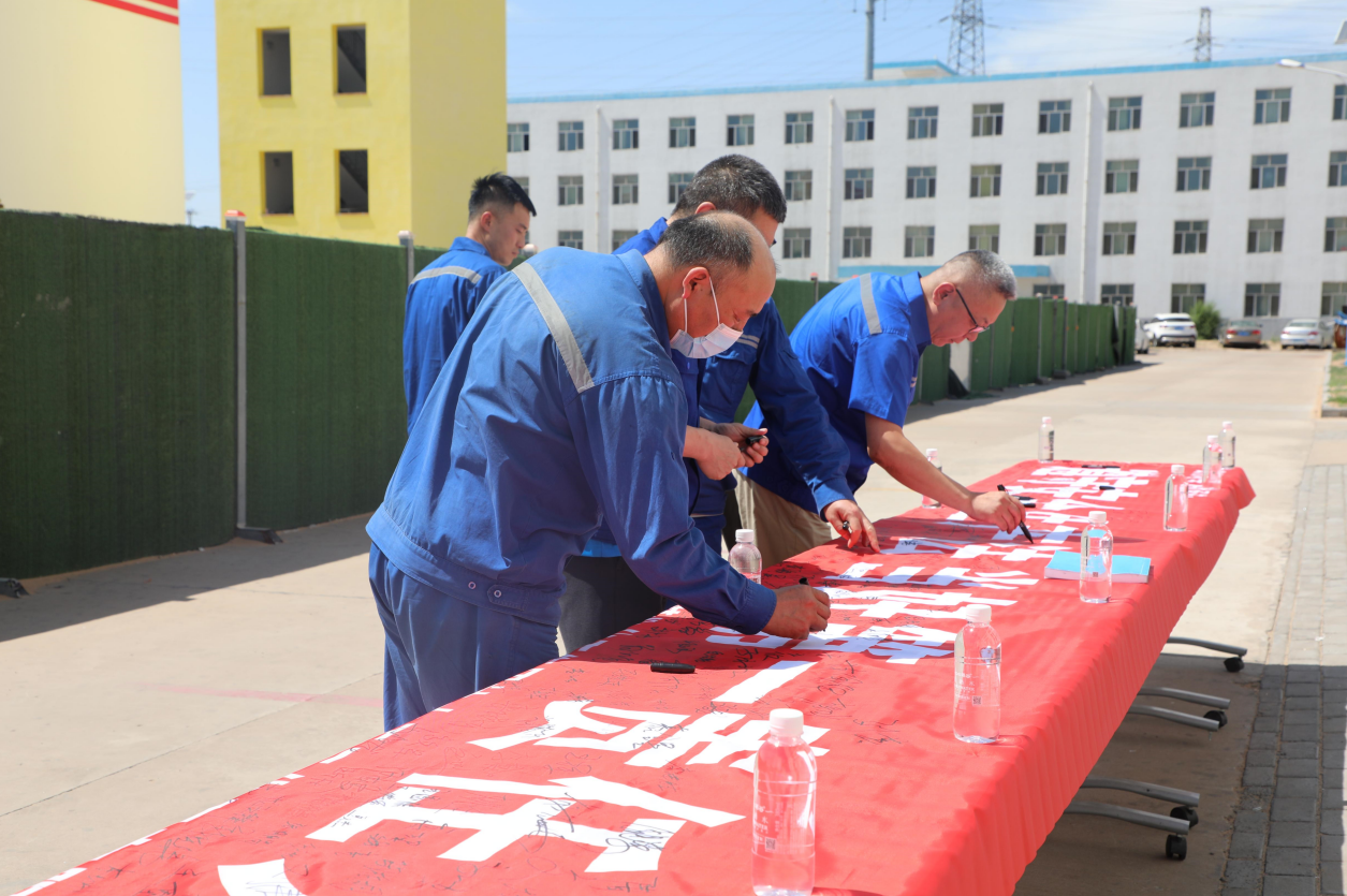會前,與會人員依次在印有“安全生產月”活動主題“遵守安全生產法 當好第一責任人”的橫幅上鄭重簽字,作出了安全承諾。
