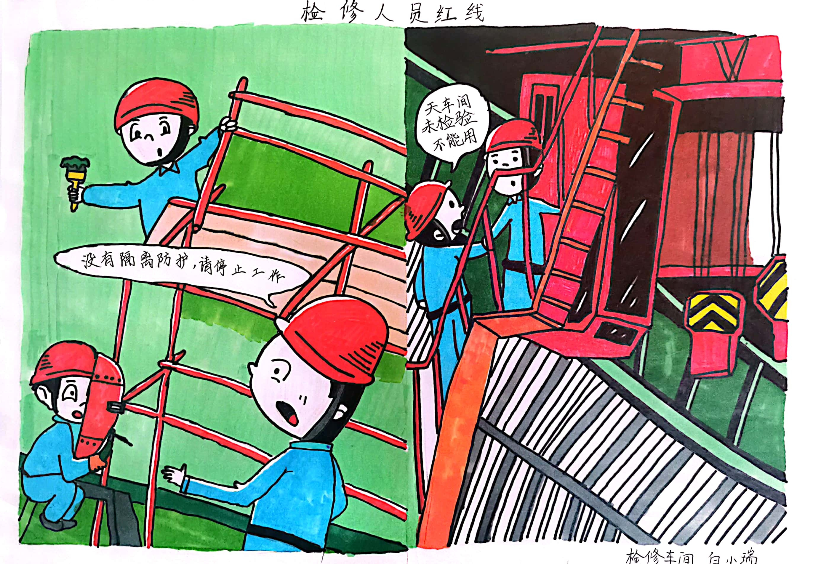 每幅作品都構思巧妙、寓意深刻、引人深思,緊扣“遵守安全生產法,當好第一責任人”主題,緊貼日常工作。其中,有家人的叮囑,有現場的典型違章及預防措施的呈現,有作業人員現場工作的內心活動……一幅幅漫畫作品充分展示了一線職工對安全生產的感悟和認知。(張趙鋒)