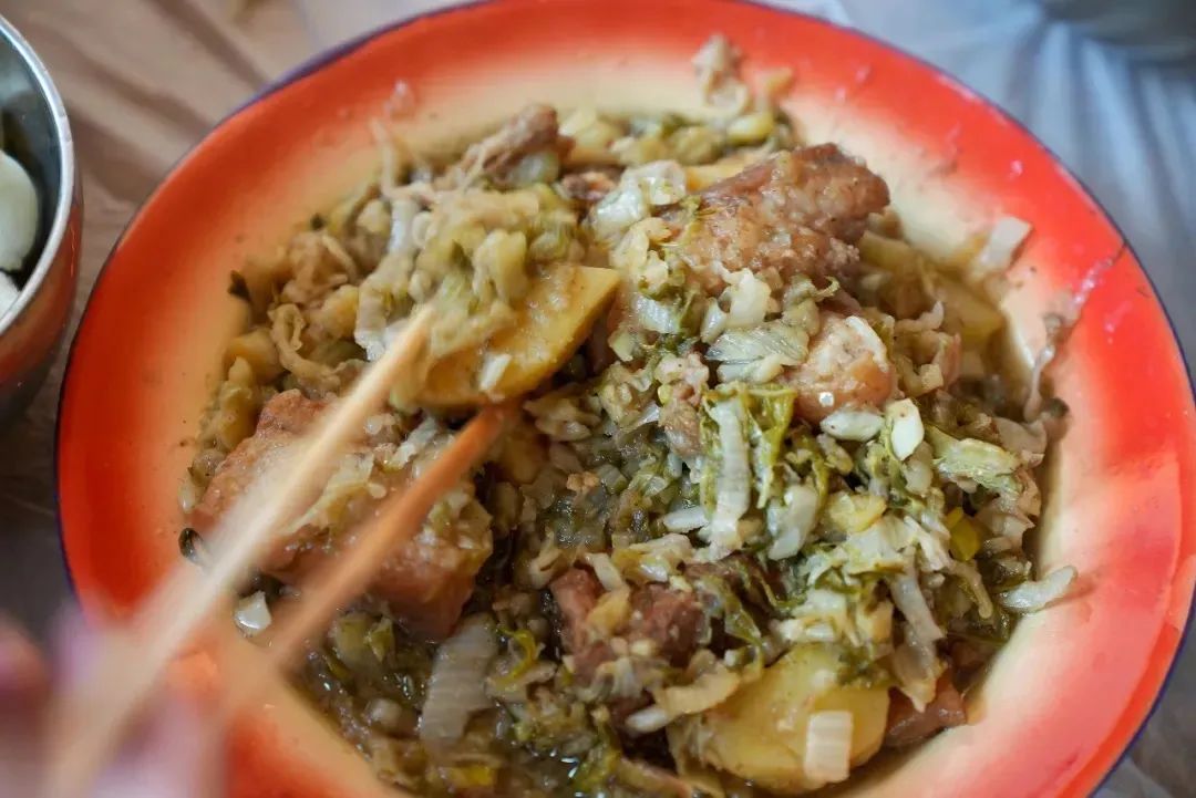 此時的廚房,已經充分發揮了它的作用,飯和菜的香味混在一起,絲絲縷縷的陽光躲過廚房的窗戶偷溜進來,將飯菜的香味兒蒸騰的更加歡快,讓人早已按揀不住想要先嘗為快,于是偷偷的伸出手向那香噴噴的肉去,母親卻眼疾手快的將酸菜下鍋,拍掉我的賊手,“急什么?拿筷子夾。”
