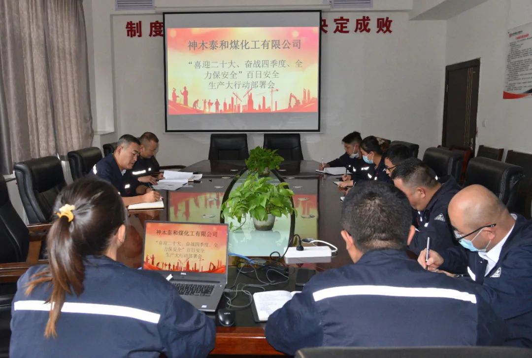 近日,泰和公司召開了“喜迎二十大、奮戰(zhàn)四季度、全力保安全”百日安全生產(chǎn)大行動動員部署會,泰和公司領(lǐng)導(dǎo)及各部門、車間負責(zé)人參加會議。