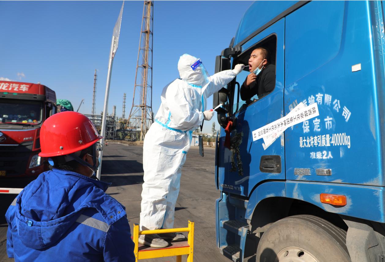 關(guān)鍵時(shí)刻,方顯責(zé)任擔(dān)當(dāng)。在每天上午的全員核酸檢測(cè)中,志愿者們服從安排,有序進(jìn)行秩序引導(dǎo)、掃碼等工作,及時(shí)在防疫工作群向各車間、部辦傳達(dá)核酸檢測(cè)現(xiàn)場(chǎng)情況,分批次、分時(shí)段組織廣大員工進(jìn)行核酸檢測(cè),做到應(yīng)檢盡檢、不漏一人。在廠區(qū)各個(gè)對(duì)外門崗,他們化身“大白”,按照屬地政府疫情防控政策要求,嚴(yán)格落實(shí)大貨車貼封條放行和終端“‘五位一體’+24小時(shí)核酸檢測(cè)陰性證明+倒查3天核酸檢測(cè)陰性證明+落地檢”查驗(yàn)措施,確保公司原料進(jìn)廠、產(chǎn)品出庫正常進(jìn)行。同時(shí),切實(shí)做好服務(wù)保障工作,及時(shí)為貨車司機(jī)送去面包、火腿腸等物資,讓司機(jī)切實(shí)感受到來自企業(yè)的關(guān)愛,確保所有來廠貨車“即裝(卸)即走、快速高效”。