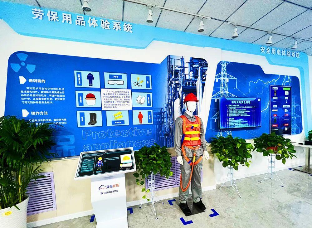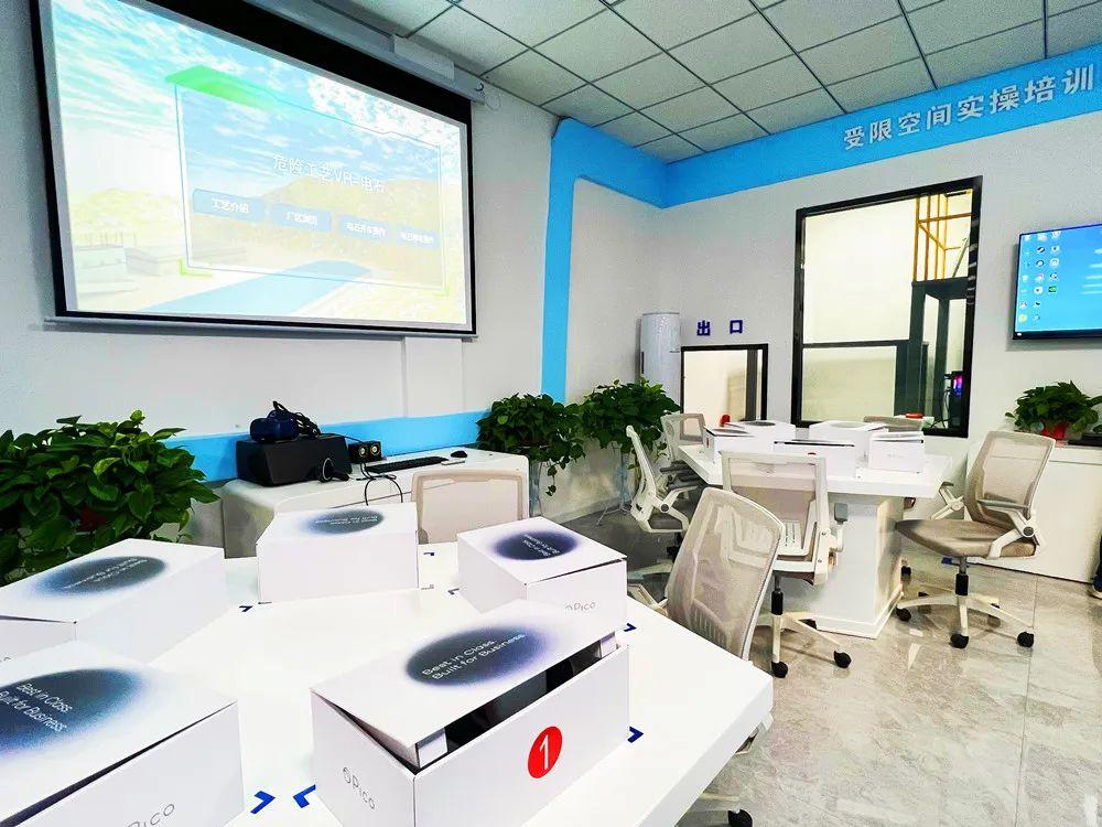 線下培訓物理空間包括實操培訓區、安全體驗區、工藝仿真區、安全文化認知區等。其中,線下培訓區配備多媒體電子顯示屏、工藝系統沙盤模型,能滿足80多人集中學習;實操培訓區包括泵與風機培訓、焊接培訓、電氣儀表培訓、化驗分析培訓及鉗工培訓;安全體驗區建設有受限空間實操培訓功能、AR設備認知體驗、危險工藝VR實訓考核、VR事故傷害警示教育體驗等10項功能設施;工藝仿真區配備電腦36臺,可實現鍋爐、汽機、電氣、燃運、環保、化水、熱控、電石控制系統等為仿真對象的1:1全范圍、全過程、高逼真度的仿真培訓功能;安全文化認知區重點展示安全承諾、安全理念、安全風險四色圖等,使安全管理從制度管理向文化管理提升。從業人員從內心深處逐漸認同安全管理,自覺遵守各項規章制度。
