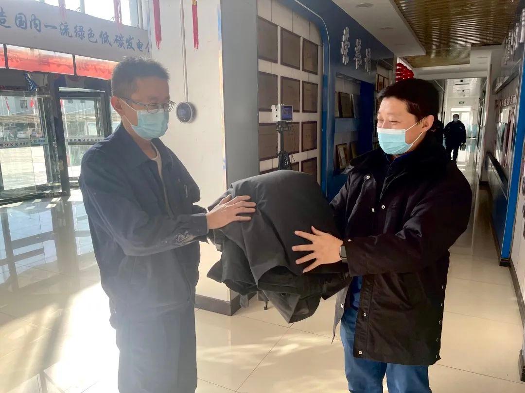 當得知潔能發電分公司御寒棉衣存在短缺后,本著“領導帶頭、廣泛發動、堅持自愿、鼓勵奉獻”的原則,能源公司中層紛紛將家中閑置棉衣送往采購管理部。緊急籌措10件棉大衣,于11月30日上午送到了潔能發電分公司生產一線,并向“疫”線人員不辭勞苦連續作戰、舍小家顧大家的擔當精神、奉獻精神表達了敬意和感謝。