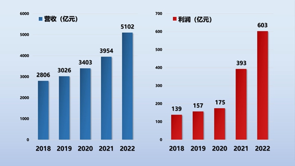 2022年,陜煤集團實現營收5102億元,比上年同期增長29%,利潤603億元,比上年同期增長53.4%,集團規模效益雙雙躍上新臺階,安全生產形勢持續向好。完成煤炭產量2.33億噸,化工產品產量1954萬噸,發電量515億度,粗鋼產量1217萬噸,金融、物流、建材、機械制造板塊持續發力。連續8年入圍世界500強榜單,位列2022年世界500強第209位,比上年220位前進了11位。位列中國企業500強第67位,蟬聯上榜陜企第一,排名穩步提升,展現出良好的成長性。為全國18個省(區、市)提供能源支持,發揮了國有能源企業“壓艙石”作用。