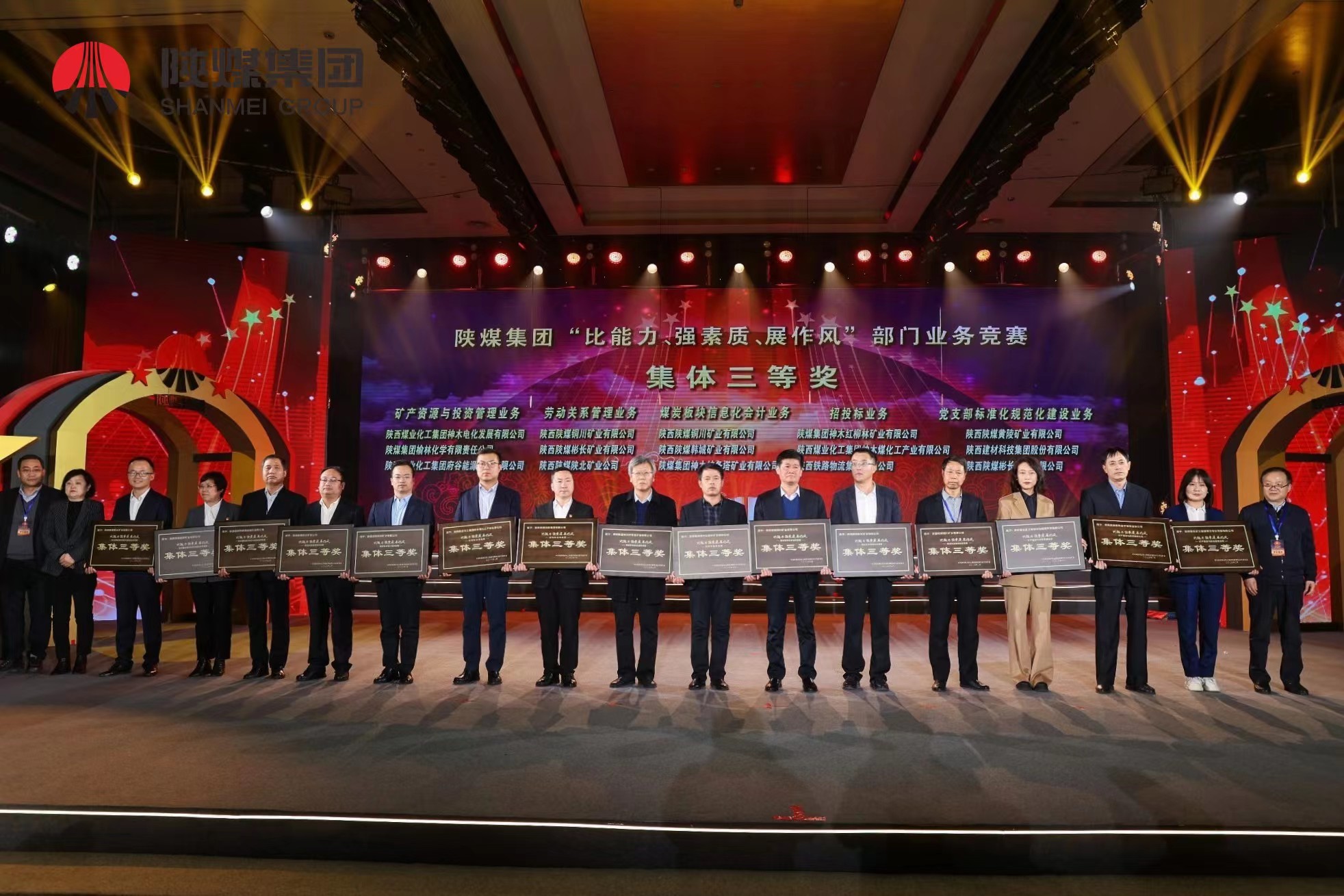 2月16日,陜煤集團舉辦2022年度“最美員工”暨“比能力、強素質、展作風”部門業務競賽頒獎晚會。神木煤化工公司榮獲礦產資源與投資管理業務競賽集體二等獎、招投標業務競賽集體三等獎,所屬電化公司榮獲礦產資源與投資管理業務競賽集體三等獎。