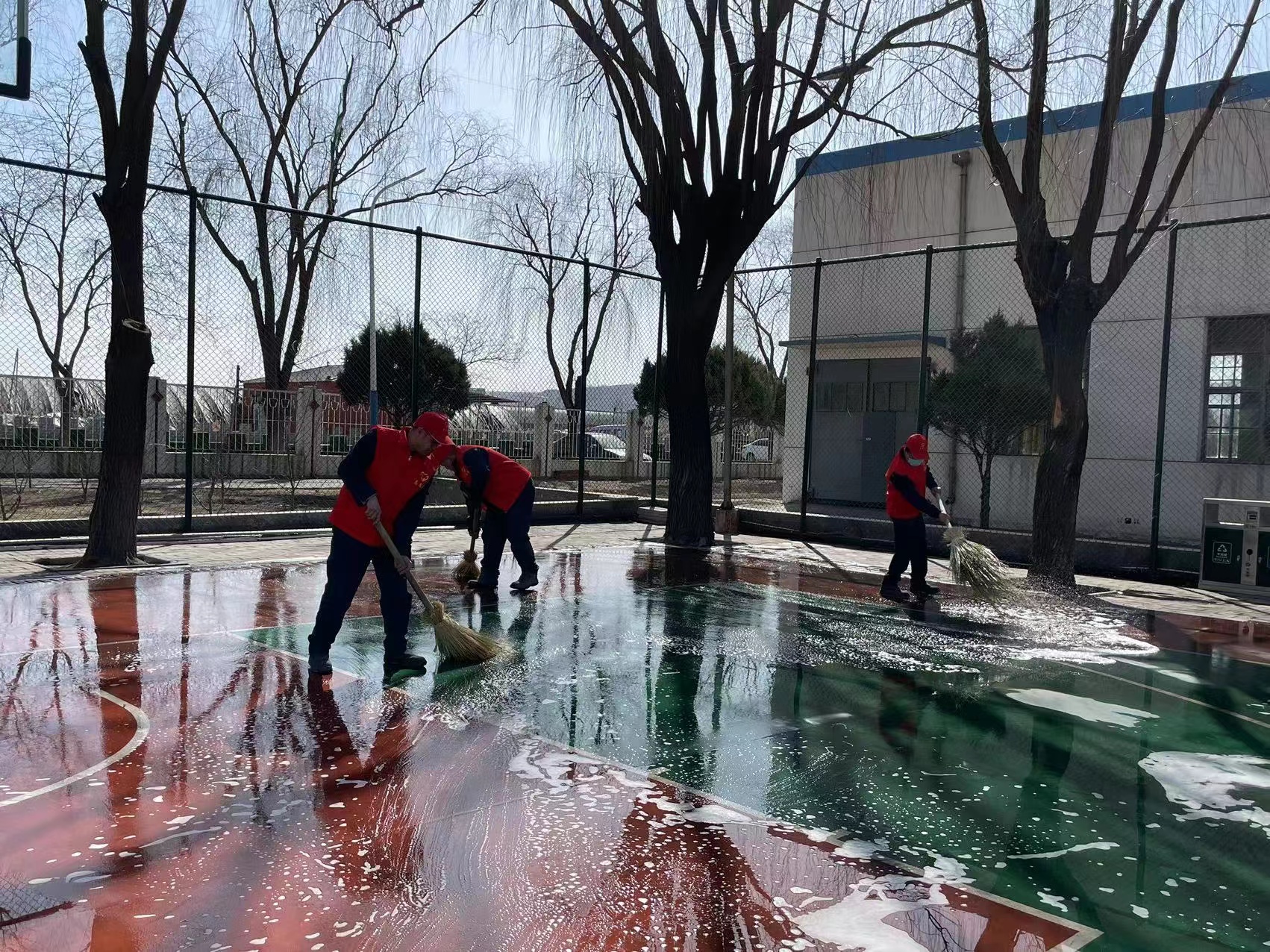 他們有的正在精心為職工免費理發(fā)、有的清理廠區(qū)花園的各類垃圾、有的正在和籃球場地面的積灰“較勁”、有的正在為宣傳欄“清理擦身”、有的正在為蓮品苑“沐浴洗禮”…