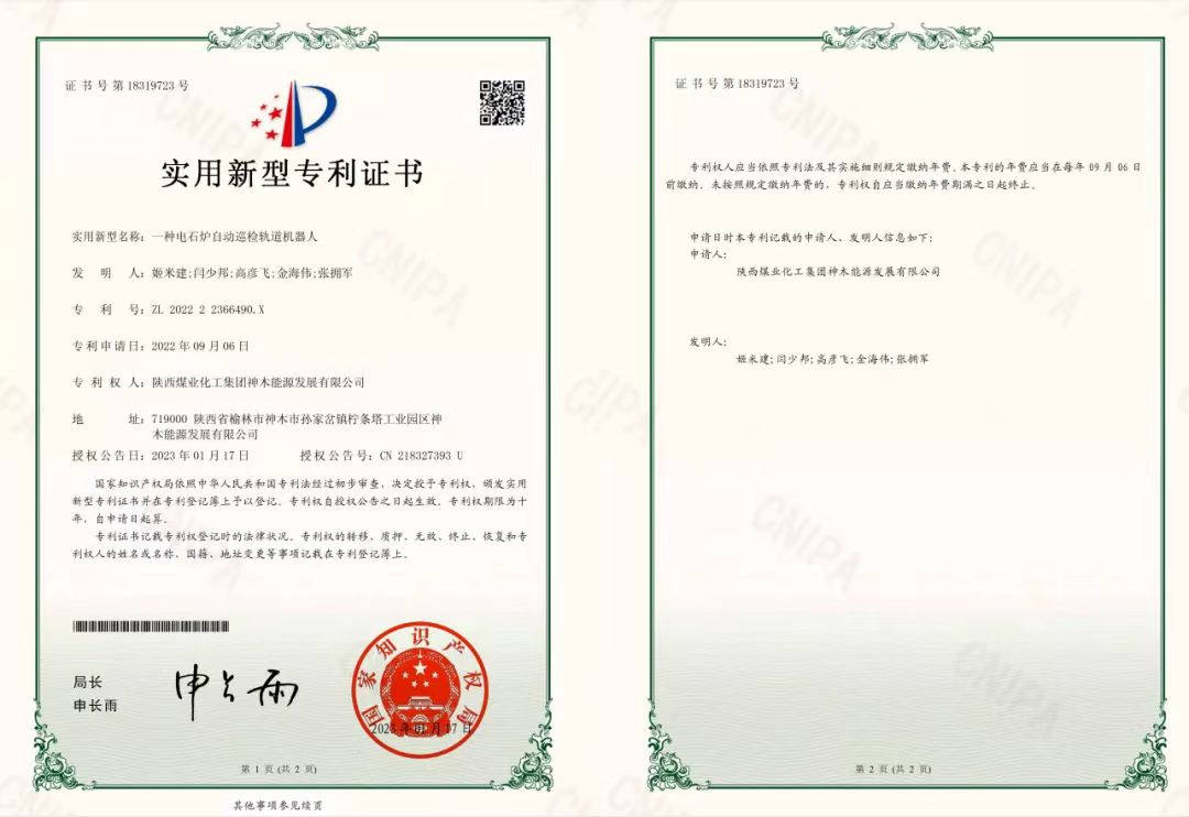 奮進陜煤:神木煤化工能源公司:電石爐自動巡檢軌道機器人投用并獲得國家實用新型專利