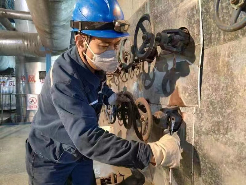 年近50的維修“老兵”裴軍,每逢檢修總是沖鋒在前,或聽或看或摸,忙碌的身影穿梭在現(xiàn)場每個角落。風機平臺上、除塵器頂層、爐膛內(nèi)部,他都會逐一檢查,不放過任何一個隱患。