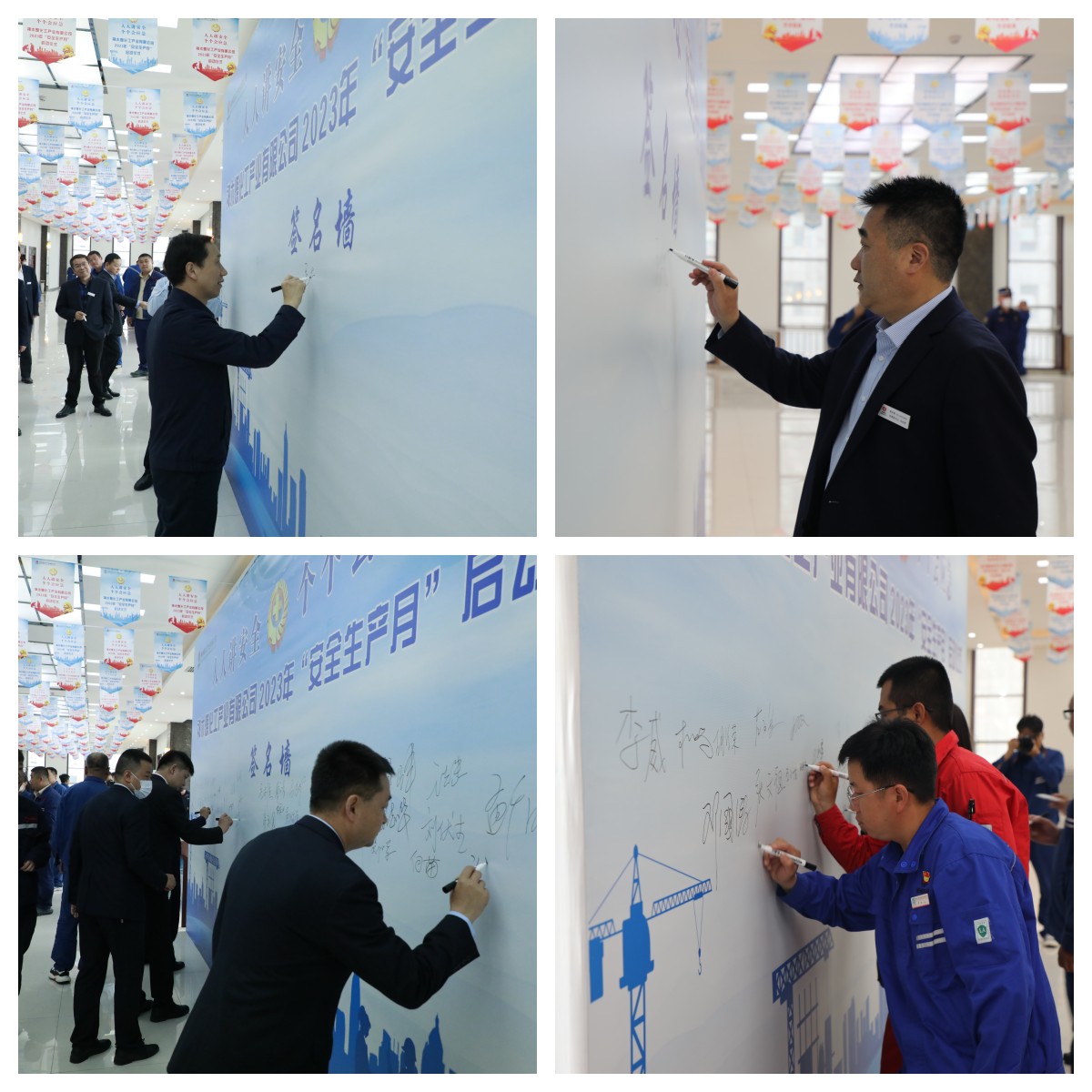 儀式上,神木煤化工公司黨委副書記、工會主席辛文輝帶領(lǐng)全體參會人員進(jìn)行安全宣誓;神木煤化工公司副總經(jīng)理問緒忠安排部署了“安全生產(chǎn)月”重點(diǎn)工作;能源公司黨委書記、董事長張進(jìn)峰代表基層單位作表態(tài)發(fā)言;全體與會人員在簽名墻上簽名。