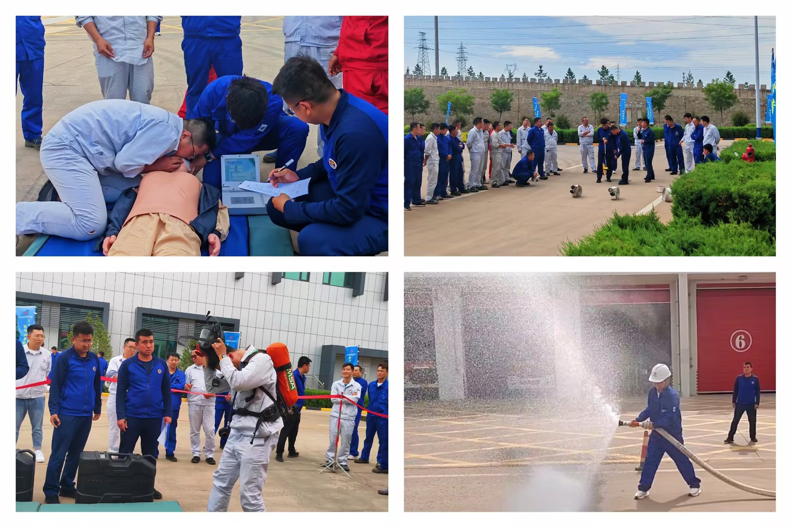 以演練促安全,增強員工內動力。公司堅持把“人人講安全、個個會應急”體現到具體活動成效上。針對本單位安全生產特點,公司聯合神木市應急管理局、榆林市生態環境局神木分局,主辦了2023年液氨泄漏事故綜合應急預案聯動演練,公司所屬5家單位主要負責人等120余人現場觀摩,檢驗生產安全事故應急預案的科學性、實用性、針對性,提升了應對突發事件的意識和能力。組織開展了危險源動態辨識判斷、緊急狀態下避險逃生演練,全面推行“無腳本”演練模式。6月份,公司舉辦各類安全消防事故演練30余次,安全知識培訓、消防技能競賽、安全知識考試等50余次,累計參與人數5000余人次,做到了人員全覆蓋。在榆神工業區第一屆“火焰藍”消防運動會上,所屬富油公司榮譽團體第二名。