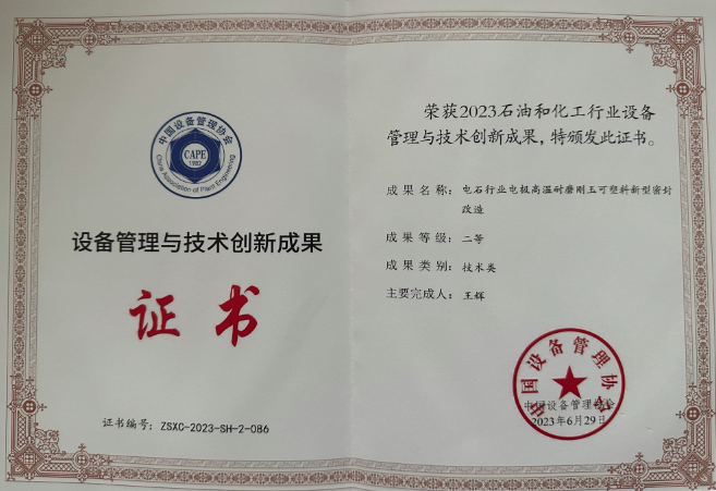 近日,神木煤化工能源公司電極高溫耐磨剛玉可塑料新型密封改造項目榮獲中國設備管理協會“設備管理與技術創新成果”二等獎。該項目的實施為能源公司降低電極事故,穩定電石爐生產,落實降本增效舉措具有重要意義。