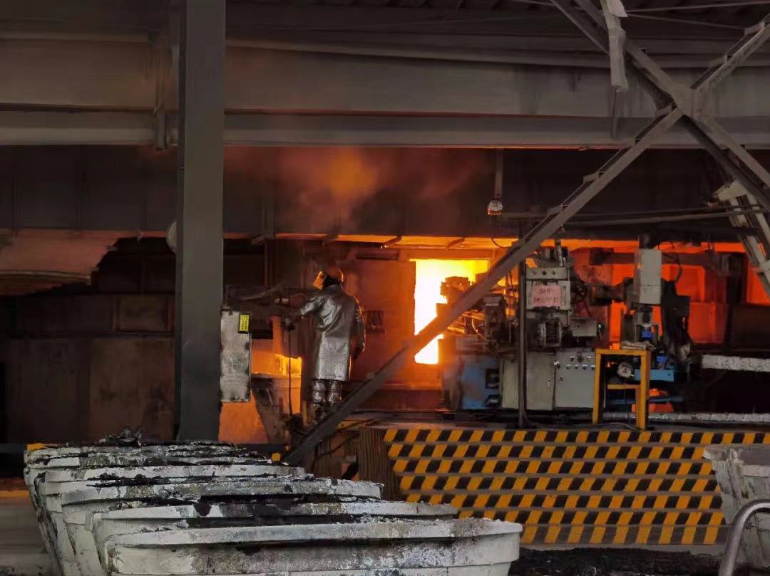 電石爐前溫度有多高?即便是寒冬臘月,普通人待上幾分鐘便會(huì)有灼熱感。炎炎夏日,幾分鐘時(shí)間工作人員的汗水就浸濕了衣服。爐前工作人員身著防護(hù)服、勞保鞋、鋼帽手套,將他們包裹的密不透風(fēng),仿佛一個(gè)個(gè)“小銀人”,在崗位上忙碌著。工作一段時(shí)間后就會(huì)停下來休息,大口喝水,防暑飲品區(qū)兩個(gè)不銹鋼湯桶的綠豆湯很受歡迎。戰(zhàn)高溫、保生產(chǎn),全力沖刺月度、季度生產(chǎn)任務(wù),他們是電石生產(chǎn)中的“銀色戰(zhàn)士”,火紅的爐火映照著滿是汗水卻又堅(jiān)韌的臉龐,他們用最頑強(qiáng)的毅力向高溫宣戰(zhàn),用超高“炎”值,實(shí)實(shí)在在的行動(dòng)演繹著一曲曲最動(dòng)人的勞動(dòng)贊歌。