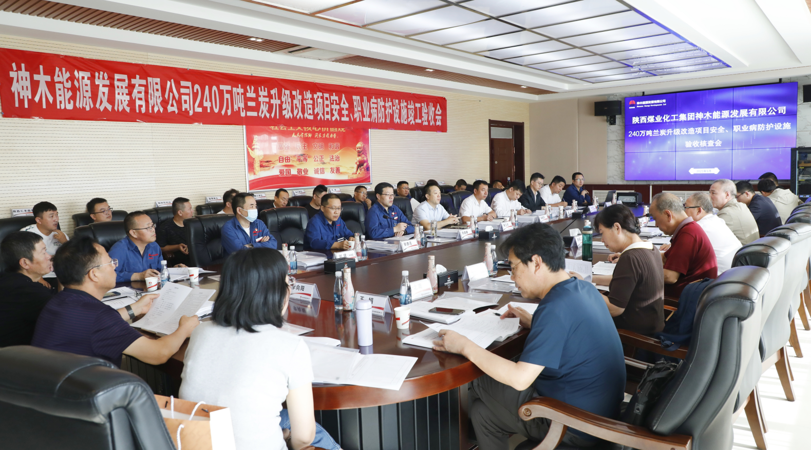 核查驗收會由陜煤集團基本建設管理部主任黃社民主持,陜煤集團安全監察部、人力資源部、化工事業部,神木煤化工公司副總經理問緒忠、副總經理侯衛斌及規劃發展部、安全環保生產部、人力資源部相關人員,項目建設單位及設計、監理、施工、檢測等參建單位和報告編制單位相關人員參加會議。