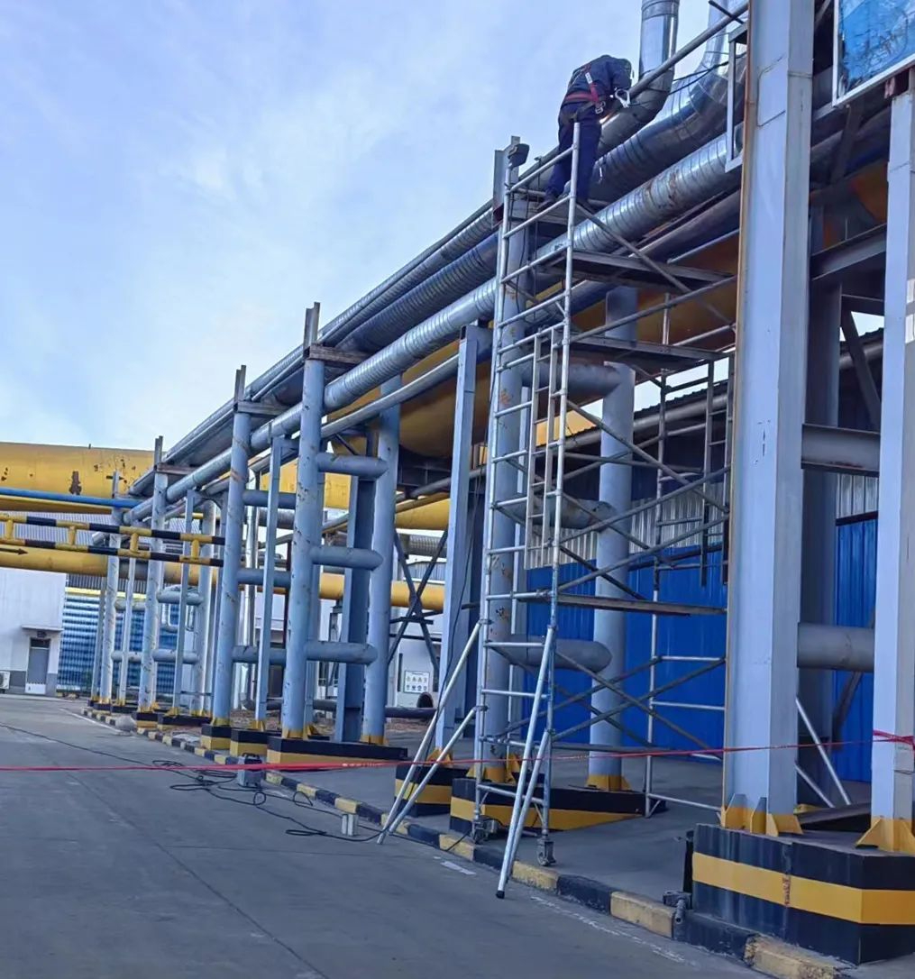 施工中,各作業人員嚴格按規程作業,穿戴好勞動保護用品,高空作業人員嚴格安全帶使用,做到高掛低用。各相關車間負責人認真做好后勤保障。檢維修人員按照方案積極施工并克服嚴寒利用5天的時間完成了管道的鋪設安裝工作。(王育明)