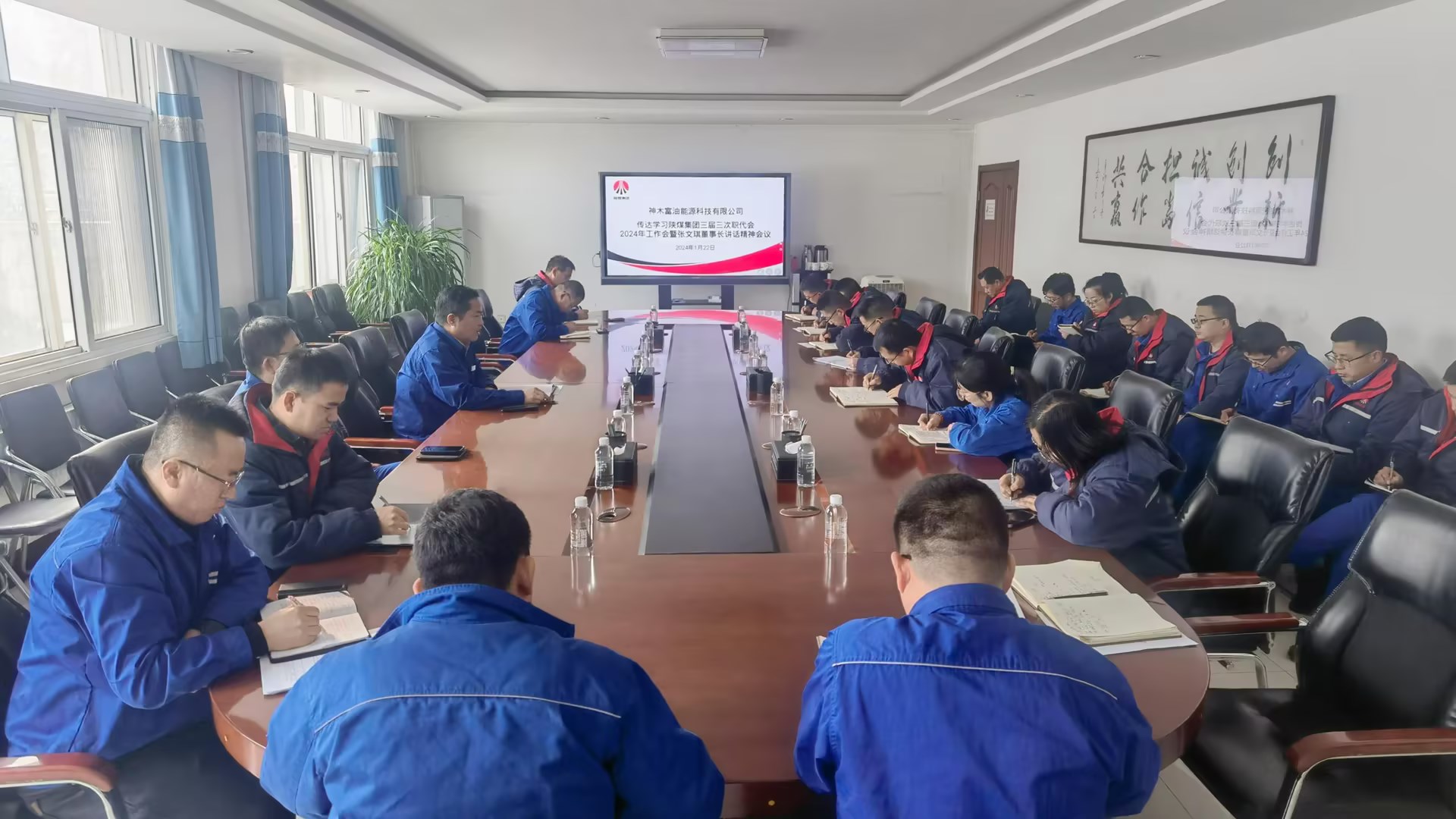 1月22日,神木煤化工富油公司召開(kāi)專(zhuān)題工作部署會(huì),集中傳達(dá)學(xué)習(xí)傳達(dá)學(xué)習(xí)陜煤集團(tuán)三屆三次職代會(huì)暨2024年工作會(huì)、集團(tuán)公司2024年安全環(huán)保工作會(huì)精神,并就貫徹落實(shí)進(jìn)行部署,引導(dǎo)全體干部員工把思想和行動(dòng)統(tǒng)一到陜煤集團(tuán)職代會(huì)精神上來(lái),奮戰(zhàn)開(kāi)門(mén)紅,決勝全年度。