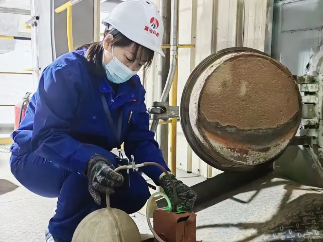 在檢修現(xiàn)場(chǎng),有時(shí)會(huì)因?yàn)槟稠?xiàng)指標(biāo)不合格或2小時(shí)一次的受限空間,她就會(huì)一直駐守在塔頂,時(shí)常會(huì)錯(cuò)過飯點(diǎn)。現(xiàn)場(chǎng)檢修師傅會(huì)開玩笑地對(duì)她說:“小姑娘,都中午12點(diǎn)了,吃不上飯了……”她笑著說道:“師傅,飯?jiān)绯酝沓远家粯樱墒前踩砷_不起半點(diǎn)玩笑,你們這是入罐作業(yè),我必須要嚴(yán)格分析,確保每一項(xiàng)指標(biāo)都合格才能讓你們進(jìn)去,這是為你們的安全把關(guān)啊。”師傅們對(duì)她嚴(yán)謹(jǐn)?shù)膽B(tài)度連連點(diǎn)頭贊許。