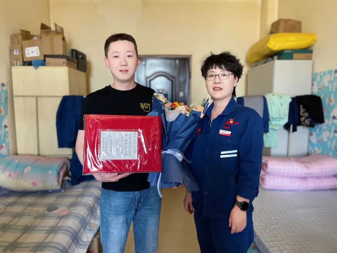 5月13日,神木煤化工能源公司工會為原料車間劉盼盼送去了新婚祝福,并送上鮮花及慰問品,在慰問過程中,該公司黨委副書記、紀委書記、工會主席閔立娟表達了對新婚職工的祝福,對員工“舍小家顧大家”的辛勤付出表示真誠的感謝,希望他在今后的生活工作中,能夠肩負起對家庭的責任,在經營好自己“小家庭”的同時,為企業“大家庭”貢獻力量。