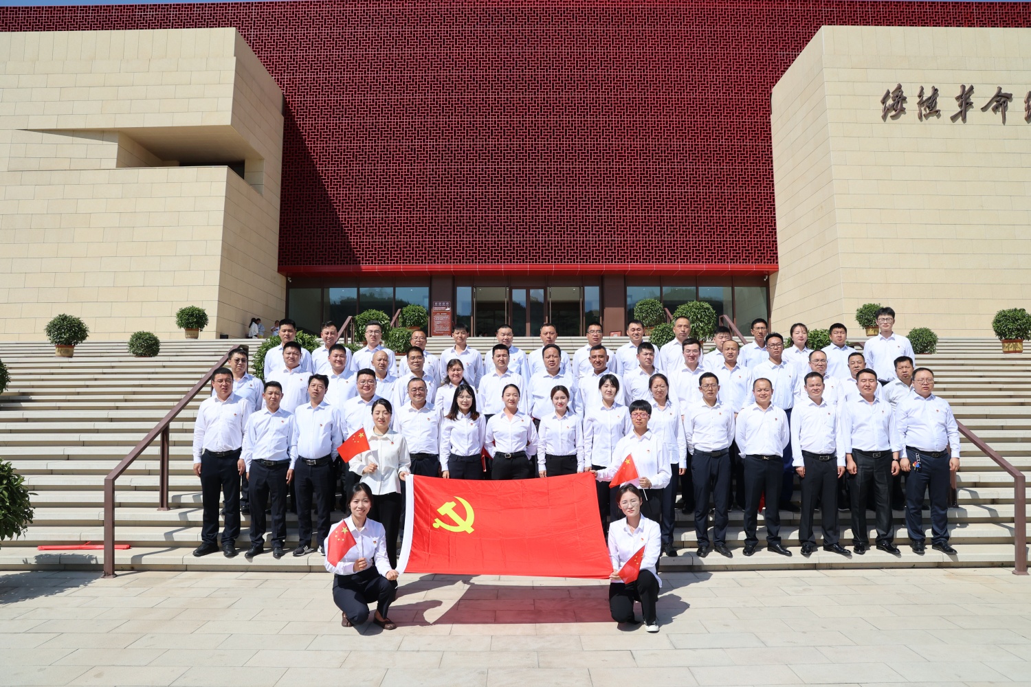 在講解員的引導下,全體人員參觀了綏德革命紀念館。館內展陳以“西北人民革命的一面光輝旗幟”為主題,布設“西北革命運動興起的策源地”“陜北土地革命斗爭的中心區”“抗日民主根據地的模范區”“奪取全國勝利的出發點”四大板塊,全面展示了中國共產黨在綏德、榆林乃至西北地區波瀾壯闊的革命歷程。一幕幕歷史畫面徐徐展開,一則則動人故事娓娓道來,大家踏著革命偉人和先烈們的足跡,緬懷毛澤東、周恩來、習仲勛等老一輩革命家為了民族獨立和解放,戰天斗地,改天換日的革命歷程,全體黨員重溫了入黨誓詞。