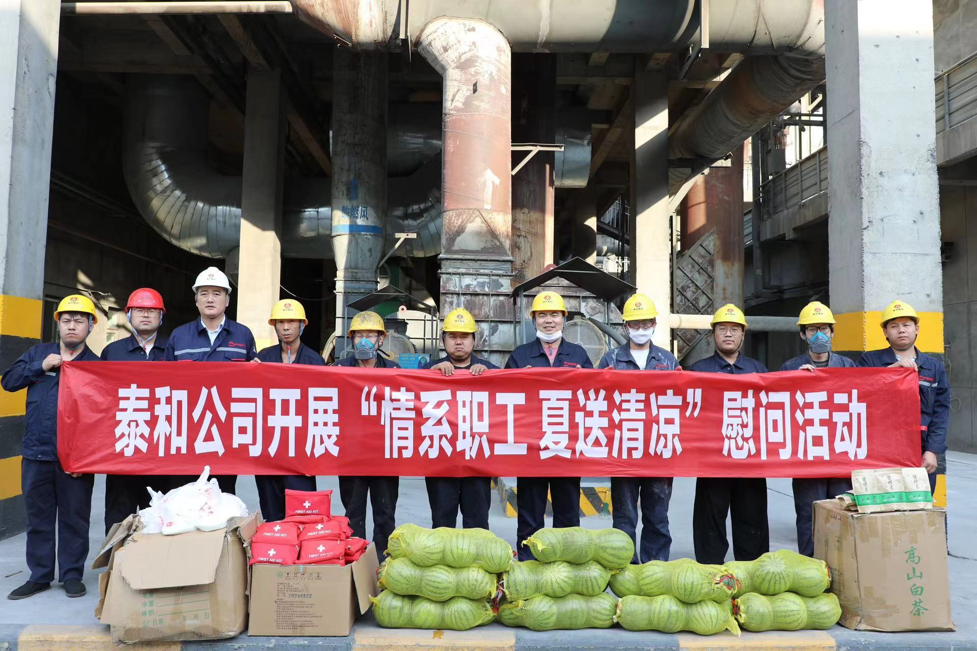 正值高溫酷暑之際,7月16日,泰和公司黨總支書記、董事長王志忠深入生產一線開展“ 情系職工 夏送清涼 ”慰問活動。