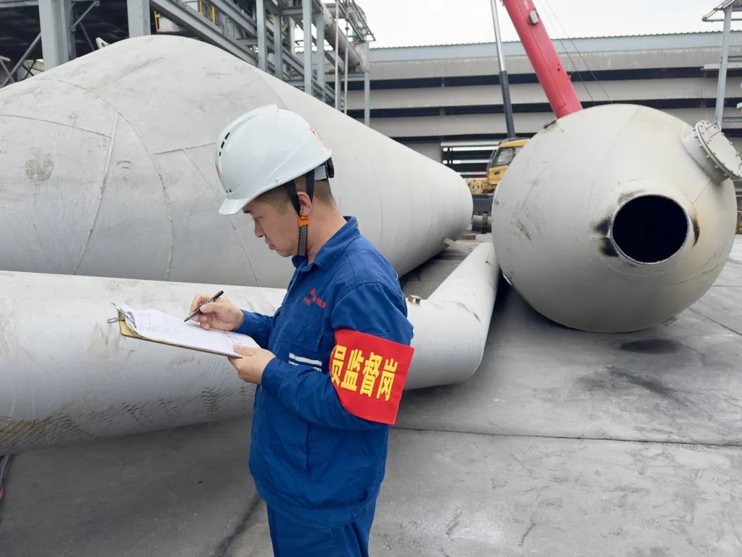 安全“紅”是全廠檢修安全的守護者,跑現場、查設備、查票證、講安全都是對生命的莊嚴承諾。“師傅,高空作業安全帶一定要高掛低用、正確佩戴。”佩戴“黨員監督崗”的黨員對作業人員進行提醒。嚴肅的表情、堅定的眼神,他們反復提醒作業人員嚴格執行安全規定、工作中更加小心謹慎,確保每一項檢修任務安全有序進行。他們是檢修現場的“安全衛士”,整個檢修過程中一絲不茍地完成每一項檢查任務,他們踏遍裝置現場每個角落,成為大檢修中又一道亮麗風景。