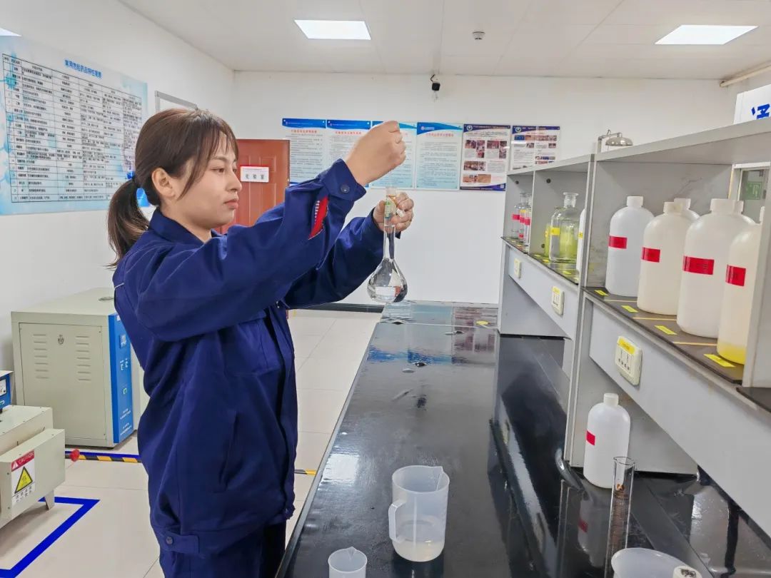 12載的職業生涯,“勤奮敬業”成為了大家眼里的她。“把簡單的事情重復做,重復的事情堅持做,堅持的事情用心做”是她的信念,她每天重復取樣、稱樣、化驗、分析、匯總、記錄、報表……。她猶如一塊海綿,不斷在知識的海洋里汲取力量,跟隨師傅強本領、學技術,準備了幾十本化驗專業書籍,時時翻、日日看,有時還要帶回家閱讀,確保化驗工作及其數據真實、精準、細致。截至目前,她已取得助理工程師、工業廢水處理高級工、化學檢驗員中級工等職稱。
