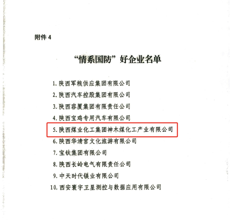 近日,神木煤化工公司被中共陜西省委宣傳部等6家單位聯合評選為“情系國防”好企業(yè),表彰該公司近年來積極響應國家號召,挺膺擔當深度參與國防科技建設。