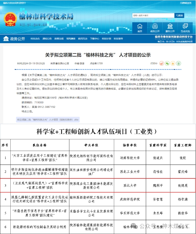 近日,能源公司和西北大學化工學院聯合組建的“蘭炭尾氣制高純氫氣‘科學家+工程師’團隊建設項目”成功入選榆林市“科學家+工程師”創新人才隊伍,并獲批專項資金支持。