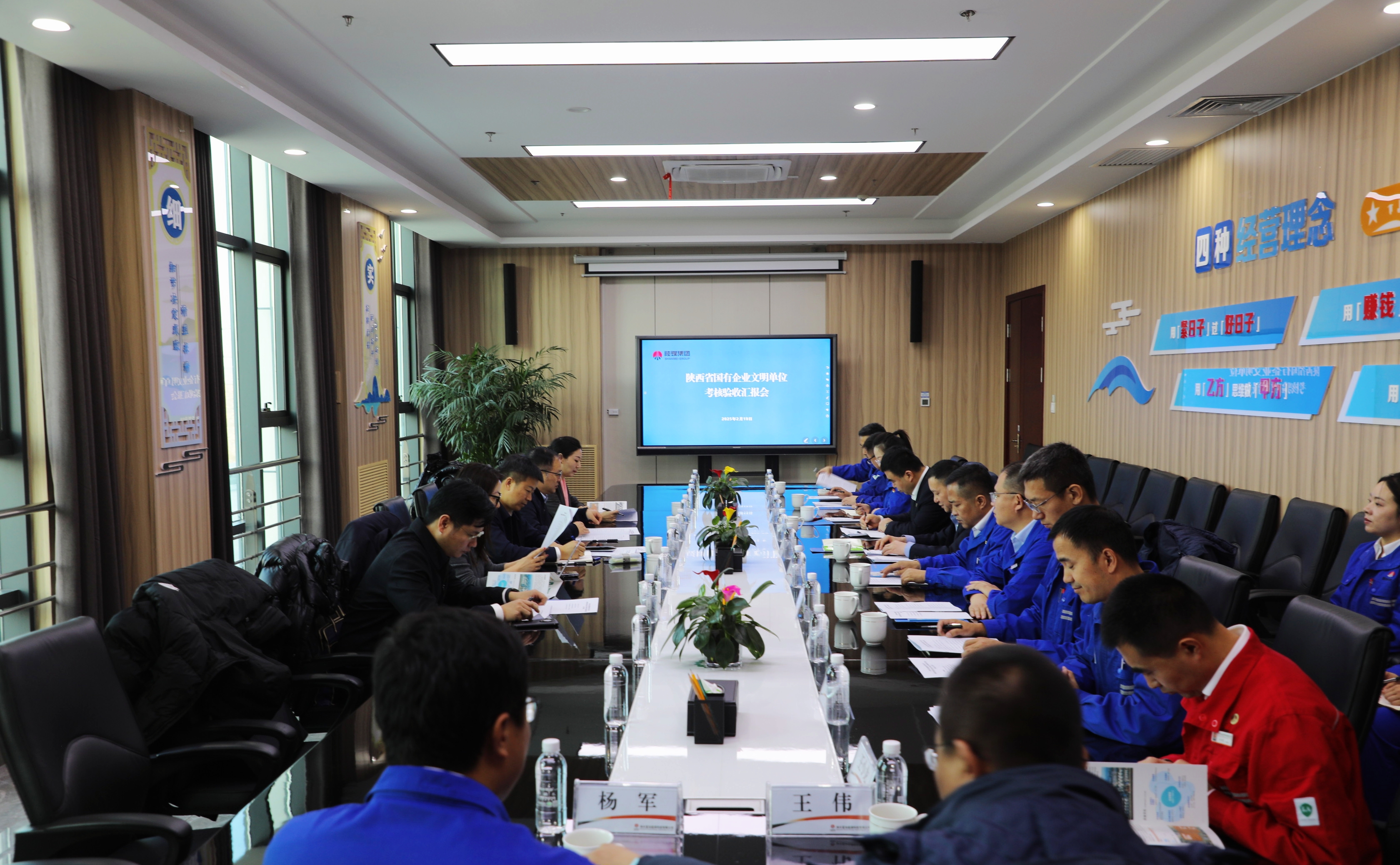 2月19日,陜西省國資委宣傳處處長胡銘一行,在陜煤集團黨群工作部部長梅方義等陪同下,到神木煤化工富油公司對創建省國資委文明單位工作情況進行考核驗收。神木煤化工公司黨委副書記、總經理辛文輝,富油公司黨委書記、董事長王升龍及相關工作人員迎檢。