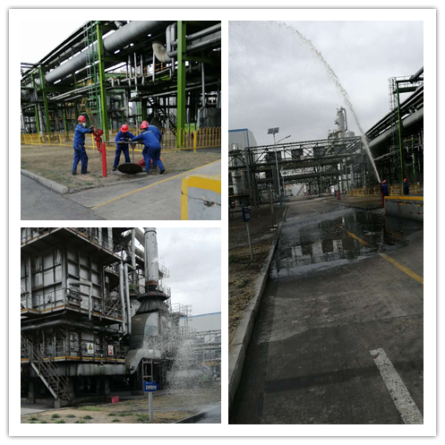 從發現泄漏點、報告車間和生產部,到立即啟動車間級應急預案,緊急泄壓、現場警戒、爐膛通滅火蒸汽、切斷燃料氣、投用消防炮對周圍設備和管線進行降溫防護等一系列模擬操作,演練人員合理分工、密切配合,圓滿完成了演練任務。