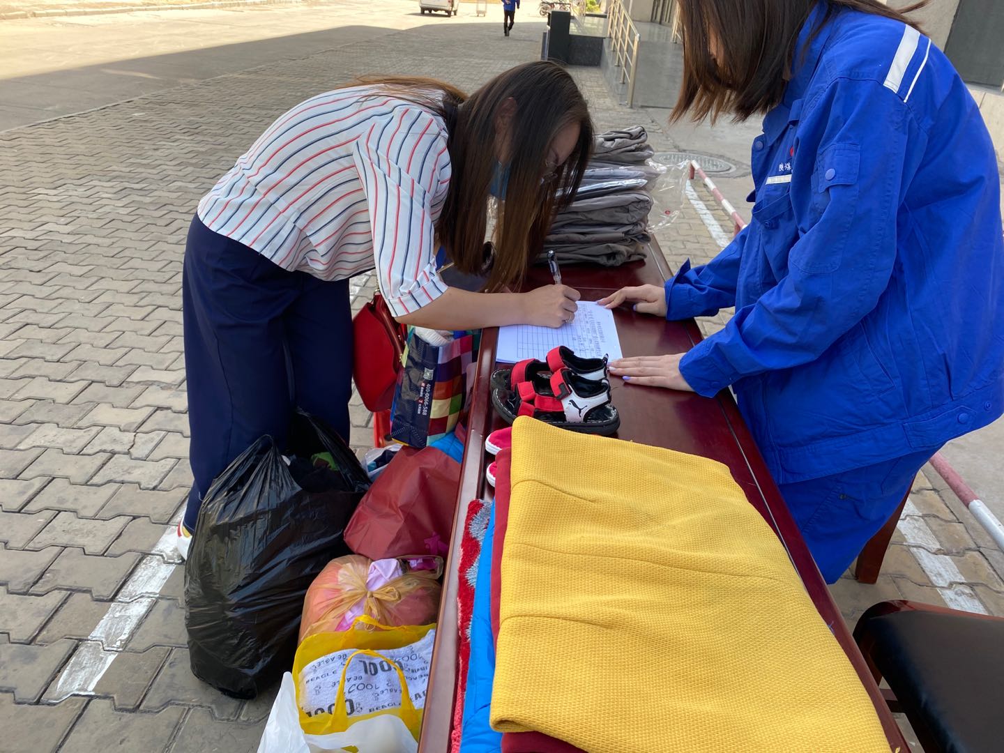 “書籍可以捐嗎?”“這些衣物最后是捐到哪里去了?”這是在現場活動被問到最多的問題。“活動結束后我們會將物品送到神木市愛心機構,由他們篩選物品后再統一捐給貧困山區的人們。”志愿者將員工提出的問題一一解釋說明。