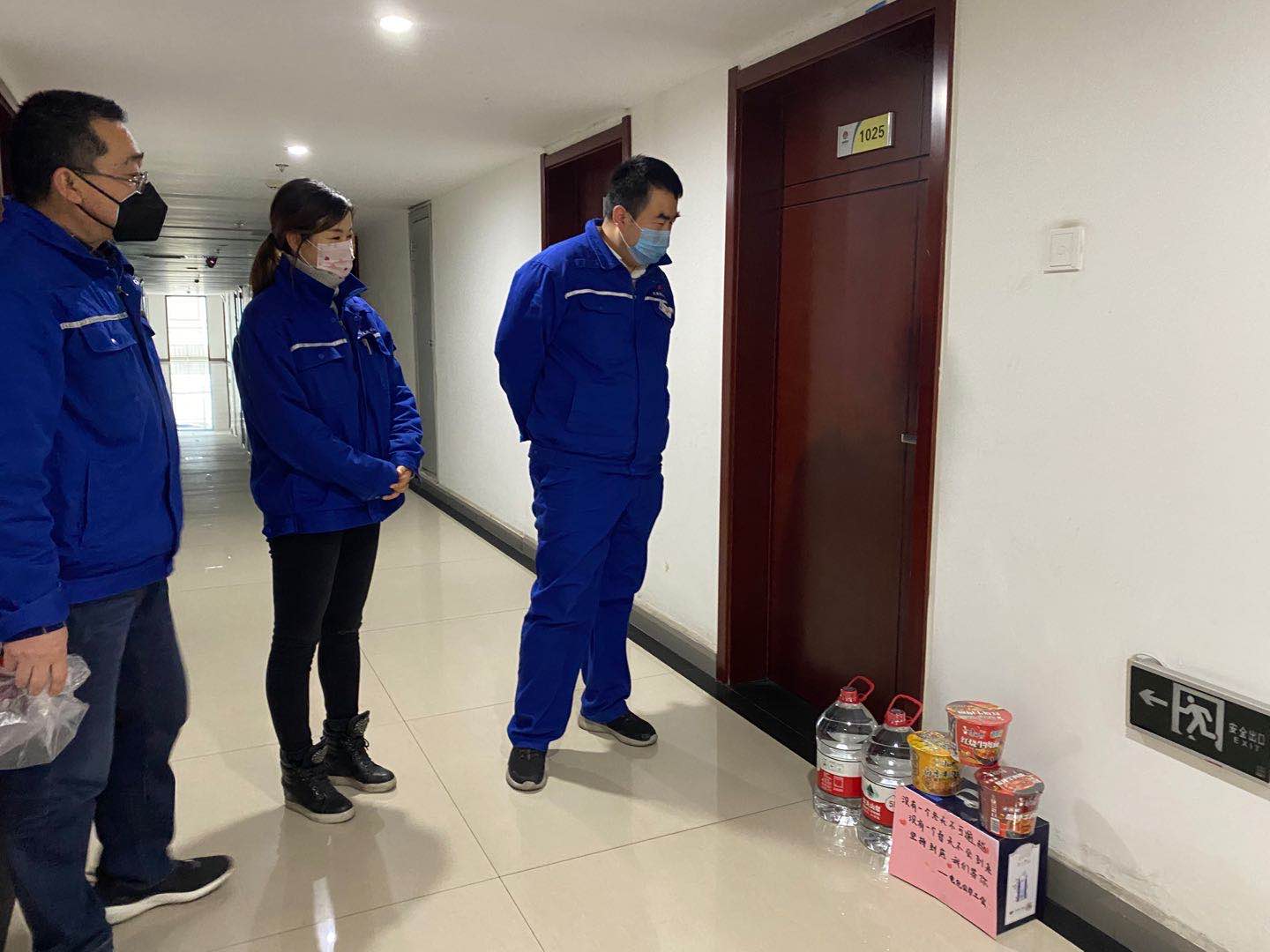 雖然隔著一道門,但也不影響任建軍同志熱情的“喊話式慰問法”,“吃得咋樣啊?有什么需要的盡管說。”他詢問了隔離人員的飲食、住宿、隔離觀察等情況,叮囑他們調節好心態,安心等待觀察解除。并要求工會工作人員和隔離同志每天保持聯系,定時給他們推送電影等娛樂視頻。