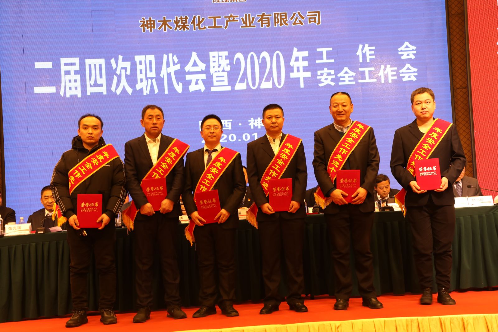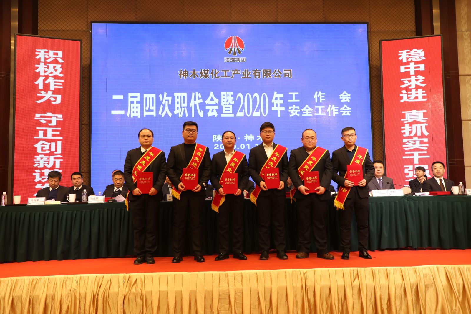 1月14日,神木煤化工召開二屆四次職代會暨2020年工作會、安全工作會。會議全面總結回顧了神木煤化工2019年取得的成績,客觀分析了面臨的形勢與存在的問題,安排部署了2020年重點工作。公司領導班子成員及所屬九家參控股單位、供銷分公司職工代表,受表彰先進代表共計160余人參加會議。