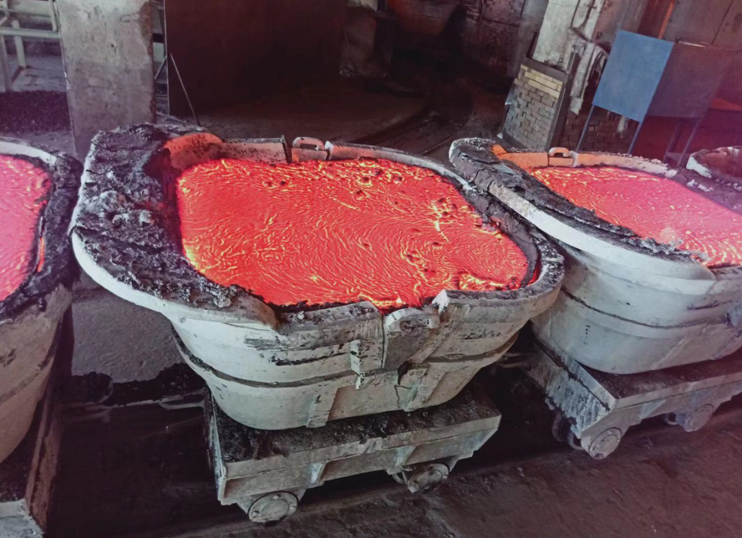 走進電化公司電石出爐層,行車在奔跑,風機在轟鳴,出爐口火花飛濺,電石流滾滾,將5米平臺照耀的如同白晝一般,視野所觸及的地方都是耀眼的弧光。隨著出爐機的不斷帶釬,經過電石爐膛高溫熔煉生成的電石流奔騰而出,一鍋又一鍋紅熱的電石成品順著軌道緩緩地運入冷卻車間......