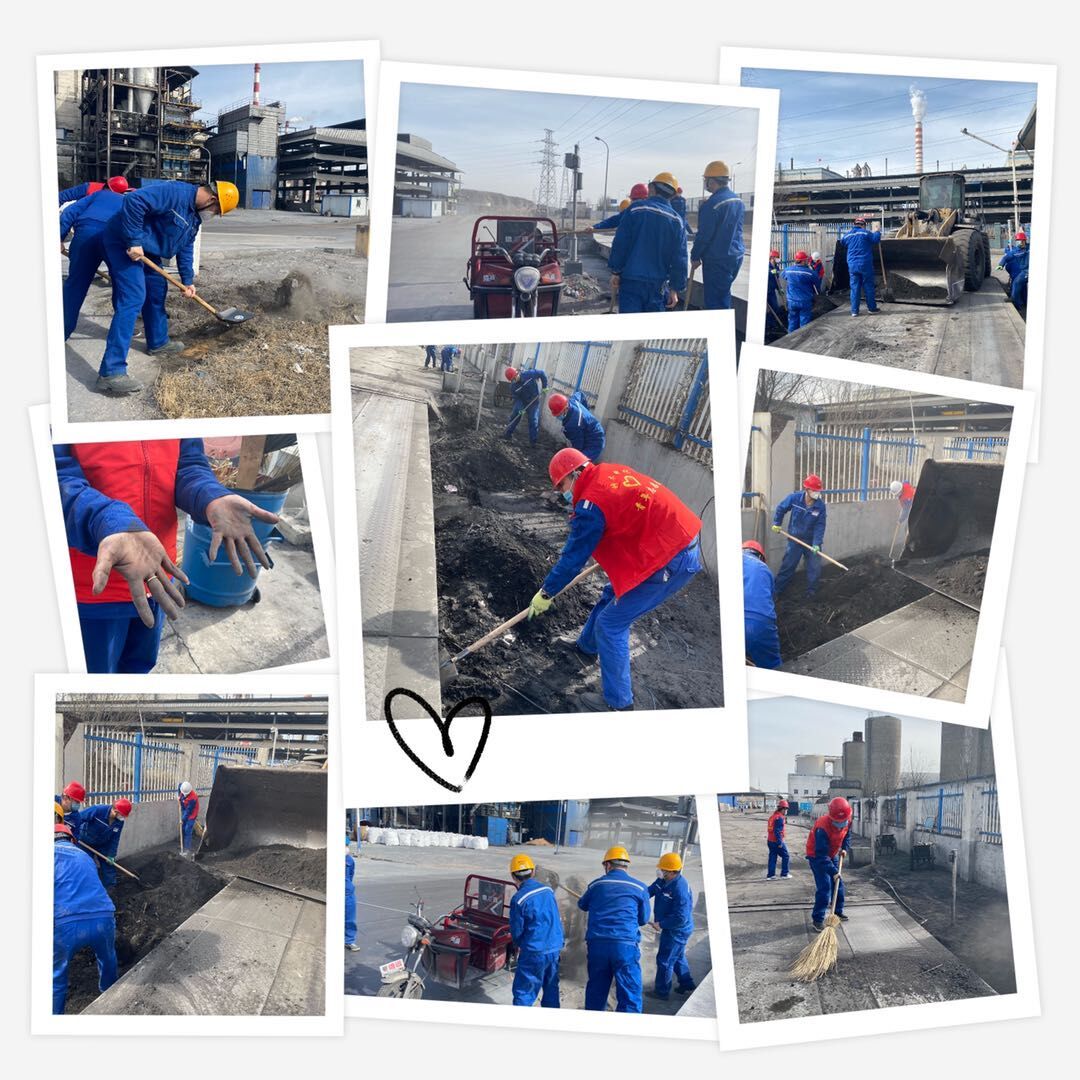當(dāng)日下午兩點半,70多名青年志愿者在公司辦公樓前集合,由該工會主席帶隊,分為4個小組對煤出磅房、煤進(jìn)磅房、原料出磅房和原料進(jìn)磅房進(jìn)行清掃。