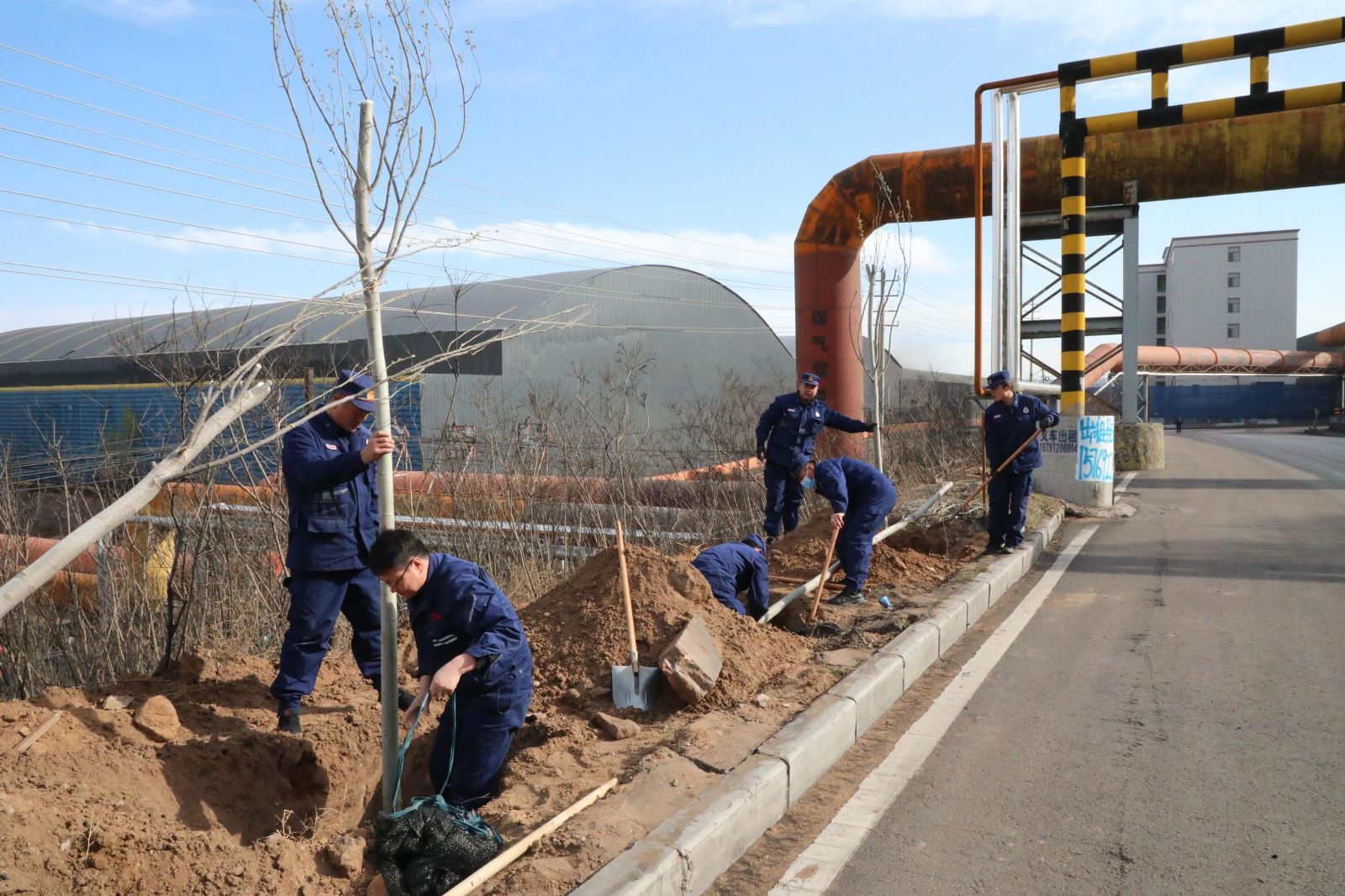 活動現(xiàn)場,黨旗飄揚,黨員干部、職工充分發(fā)揚不怕臟、不怕累的精神,大家干勁十足,挖穴、扶苗、填土、踩實、澆水,每道工序都一絲不茍、各個環(huán)節(jié)配合得非常默契,合力栽下一顆顆綠化樹苗,生動展示了黨員干部爭做生態(tài)文明建設先鋒的良好形象。經(jīng)過一上午的努力,200余株楊樹苗整齊成行,生機盎然地矗立在風中,新栽種的綠化樹苗在道路兩旁構成一道亮麗風景線,為廠區(qū)增添了一片新綠。
