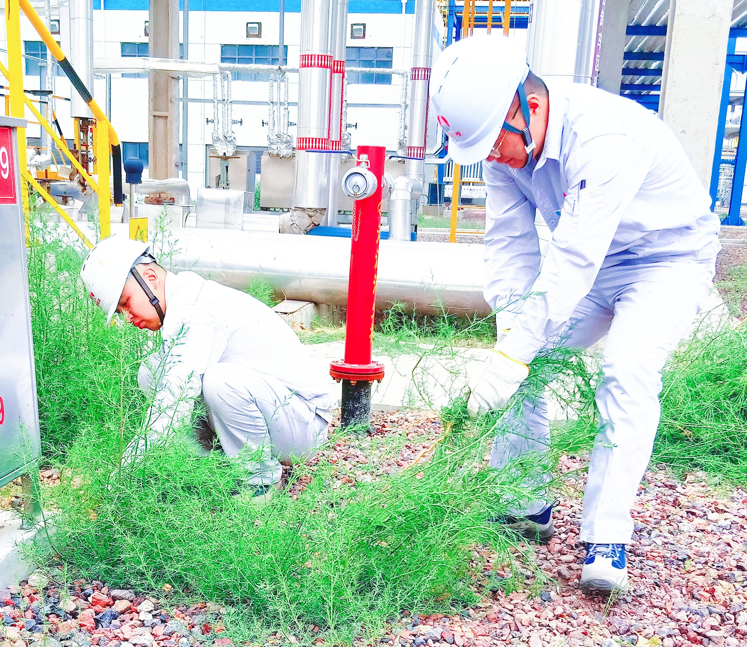 一線員工在烈日下進行義務勞動,他們將整個區域的雜草、枯枝清理干凈,消除火災隱患