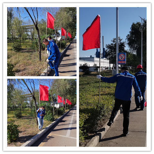 為慶祝新中國(guó)成立72周年,9月28日,神木煤化工天元公司第一黨支部開(kāi)展了“紅旗招展迎國(guó)慶”主題黨日活動(dòng),在公司廠區(qū)主干道兩側(cè)、中控室和行政樓前布置國(guó)旗,以表達(dá)對(duì)祖國(guó)母親生日的祝福。