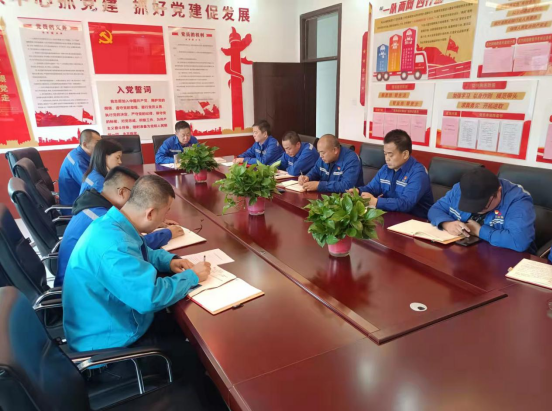 10月13日,天運運輸黨支部組織全體黨員領導干部集中學習習近平總書記來陜考察重要講話重要指示精神。(郭海波 杜江波)
