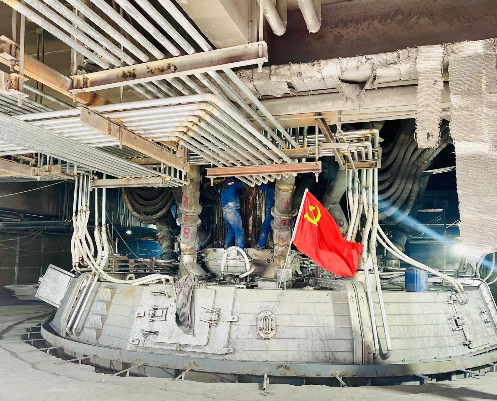 為確保本次檢修任務安全、順利完成,電石分廠特成立了檢修小組和分廠領導值班小組,小組成員執行檢修不休班政策,所有人員一心撲在檢修現場,遠處矗立的辦公樓顯得十分空蕩、寂寥。電石黨支部黨員率先作為,折少平作為檢修班的班長,更是每每不辭勞務加班至深夜,黨員郭勝榮清查檢修作業手續、嚴格把控各項檢修流程、實時監控現場作業環境,支部更是貼心的為大家購買了方便面、礦泉水等臨時飲用物資。分廠領導班子成員鉆爐膛、爬高架,大家齊心協力的和諧畫面一幀一幀被書寫在電石分廠5#電石爐檢修現場