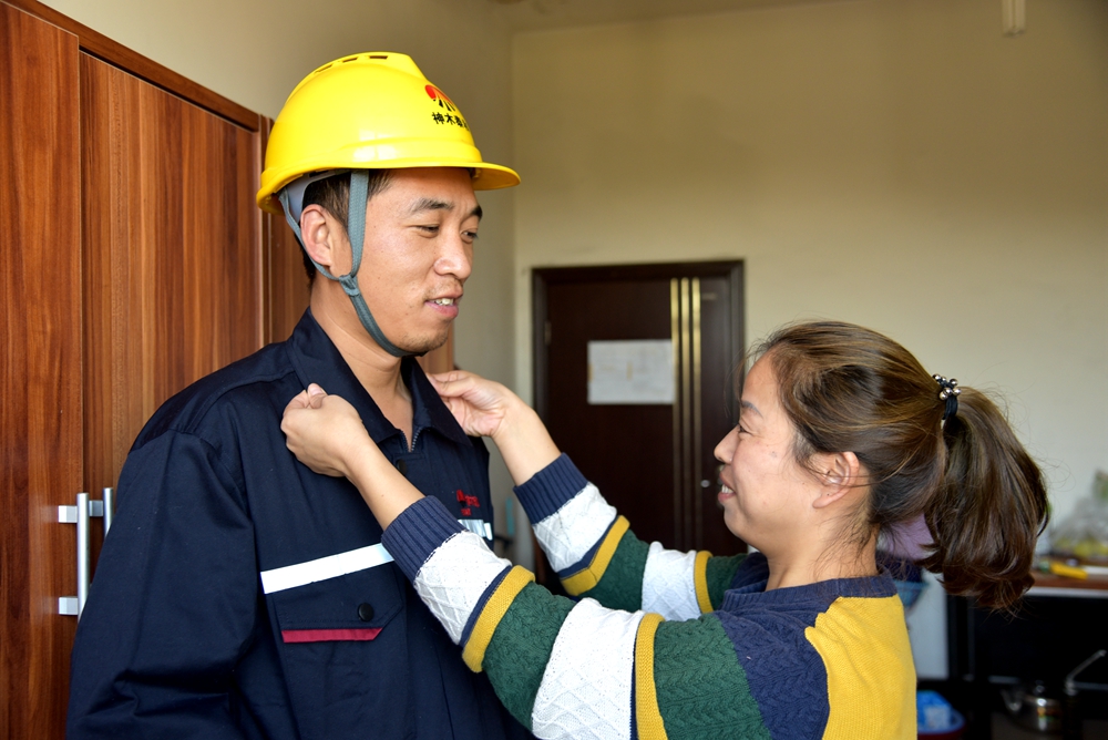 泰和公司雙職工石灰車間白江龍、供銷部王媛媛夫妻為了安心工作,舍小家、為大家,夫妻倆在工作中互相關心,互相進步,相互激勵,共同成長、進步。這不,上班前,王媛媛對丈夫白江龍細心整理工服和耐心叮嚀:上班一定要注意保護自己,你的安全和平安就是我們全家的幸福!(鄧國濤)