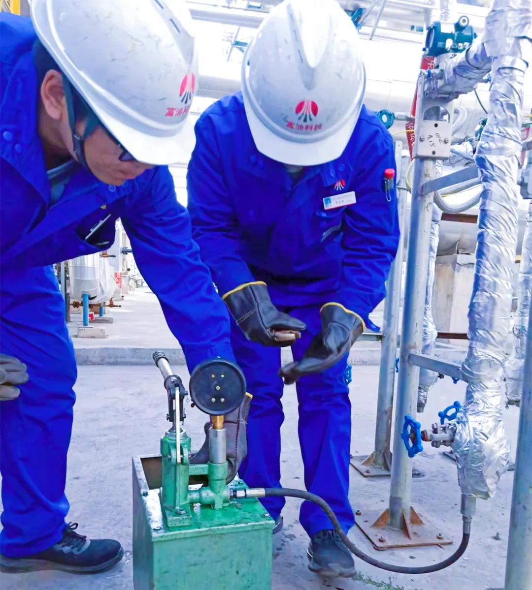 打壓開始時,陳志年還囑咐到“華仔,記好數字,每邊打三十五下”。為什么要這么準確的計數,經詢問才知道,原來目的是為了保持正負壓室的液柱高低一樣,以免帶來測量誤差。他們一把一把按下打壓手柄……三十五下打壓結束后,儀表設備平穩的投入生產,穩定運行后數據顯示正常,儀表設備維修人員迅速掛上“已灌液,勿排”標識牌,清理現場衛生后,及時提醒工藝人員封票,并結束此項工作。(楊彩莉)