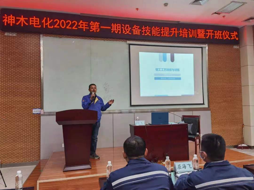 為加快公司建設AAA級旅游工廠、綠色工廠進程,提升員工的專業技術水平,神木煤化工電化公司迎來了第一期設備技能提升培訓課暨開班儀式。開班儀式由生產技術部主任工程師陳明強主持。特聘請國家能源神木化學許飛老師對公司設備專業人員進行為期一年的理論和實踐培訓。