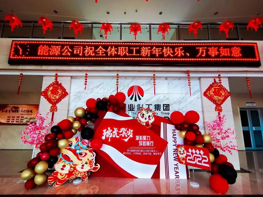 又是一年春來到,神木煤化工能源公司為給全體職工營造一個團結、喜慶、祥和的節日氛圍,能源公司在廠區內、辦公樓及餐廳等重要節點,以燈飾、樹飾等方面入手,啟動春節氛圍營造項目,全力打造“喜慶祥和、優美靚麗”的濃郁春節氛圍。