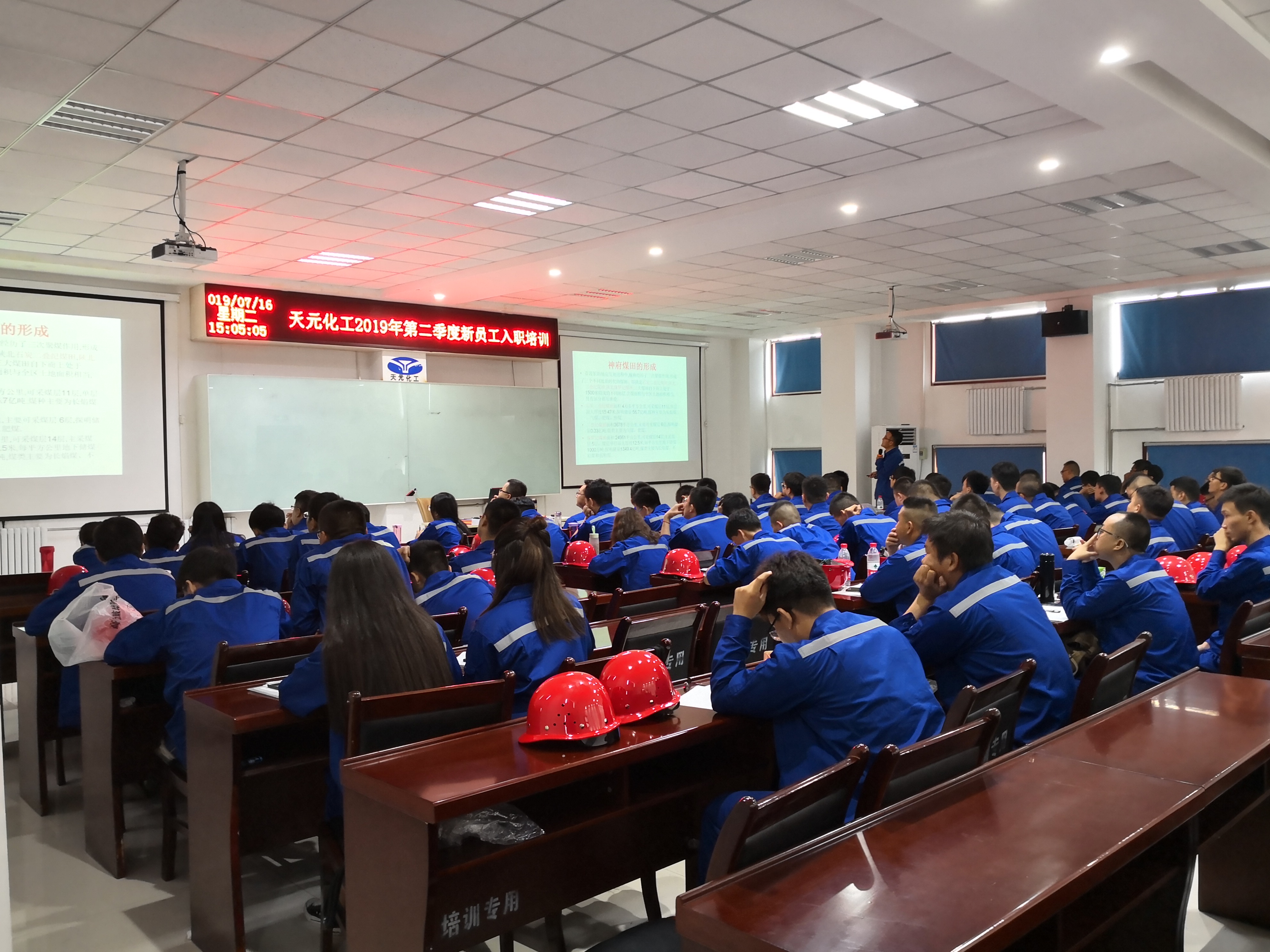 為做好新員工入職培訓,天元公司分層次制定了詳細的培訓工作計劃。公司級培訓安排了企業概況、安全與生產工藝兩個階段的培訓。由人資企管部等組織進行關于企業發展歷程、員工未來職業生涯發展、各項規章制度、企業文化等內容的培訓。再由安全環保部、基建工程中心、技術研發中心、各生產車間等分別安排培訓講師進行工藝、設備、安全、環保、項目建設及技術創新等內容的培訓,同時將安全教育與軍事操課訓練貫穿整個公司級培訓周期。公司級培訓結束后,新員工們將按計劃進入天元公司十大生產車間,通過理論學習和現場參觀學習詳細了解公司全工藝流程、現場安全操作等。整個入職培訓歷時近3個月,最終由人資企管部匯總公司級與車間培訓考核成績與日常表現,并依照綜合得分情況進行具體車間、部辦崗位的分配。