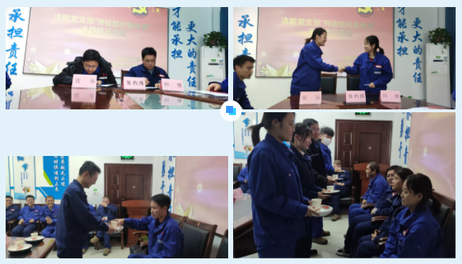“師帶徒,薪火傳。”為更好地促進潔能黨支部青年員工的成長和發展,提高青年員工的業務本領和技能水平,發揮業務骨干的傳幫帶作用,神木煤化工能源公司潔能發電分公司黨政聯合推進“師徒結對”活動,通過雙向培養,將優秀黨員培養成先進業務骨干,將先進業務骨干培養成優秀黨員,不斷為黨組織輸送“新鮮血液”,為公司培養先進業務骨干。