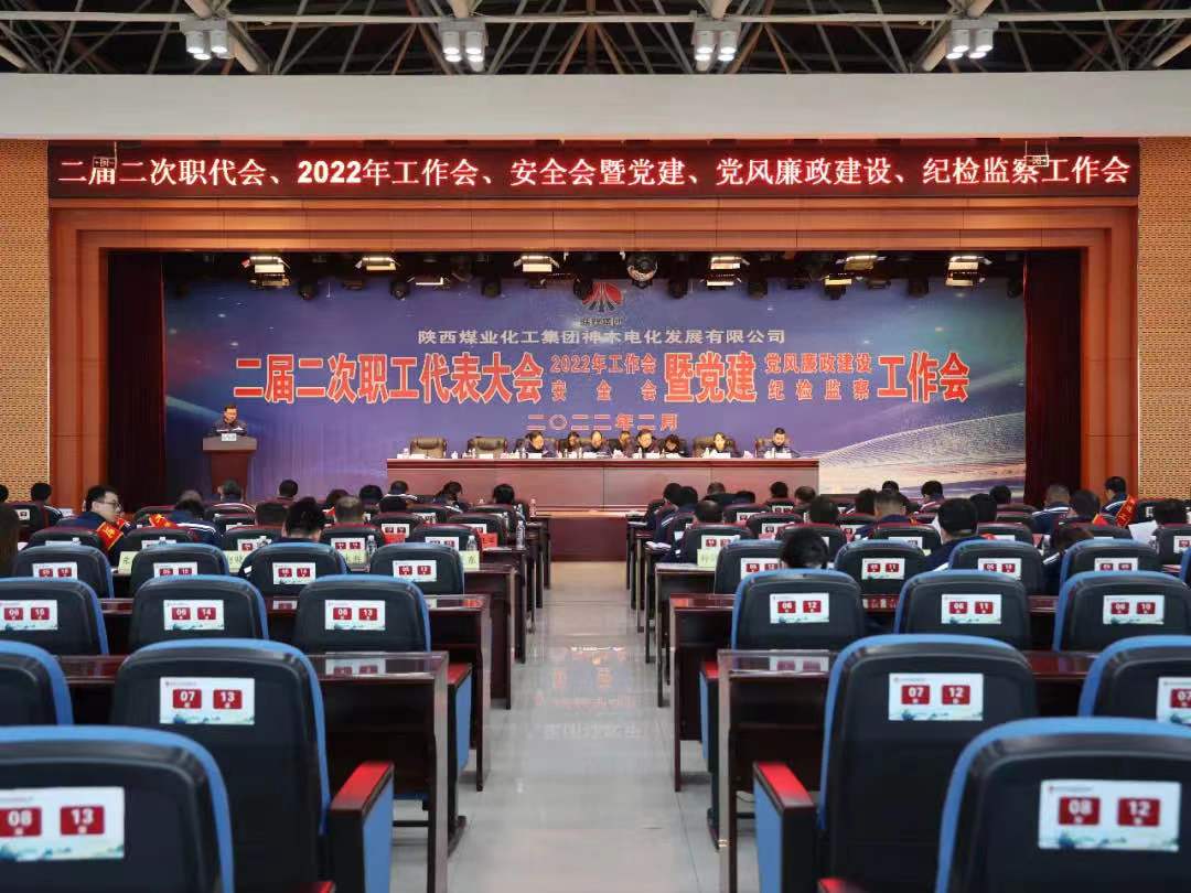 2月25日,神木煤化工電化公司召開二屆二次職代會暨2022年工作會、安全會。電化公司領導班子成員、中層管理人員、職工代表、先進集體及先進工作者參加了會議。會議由電化公司黨委副書記、紀委書記、工會主席張福增主持。