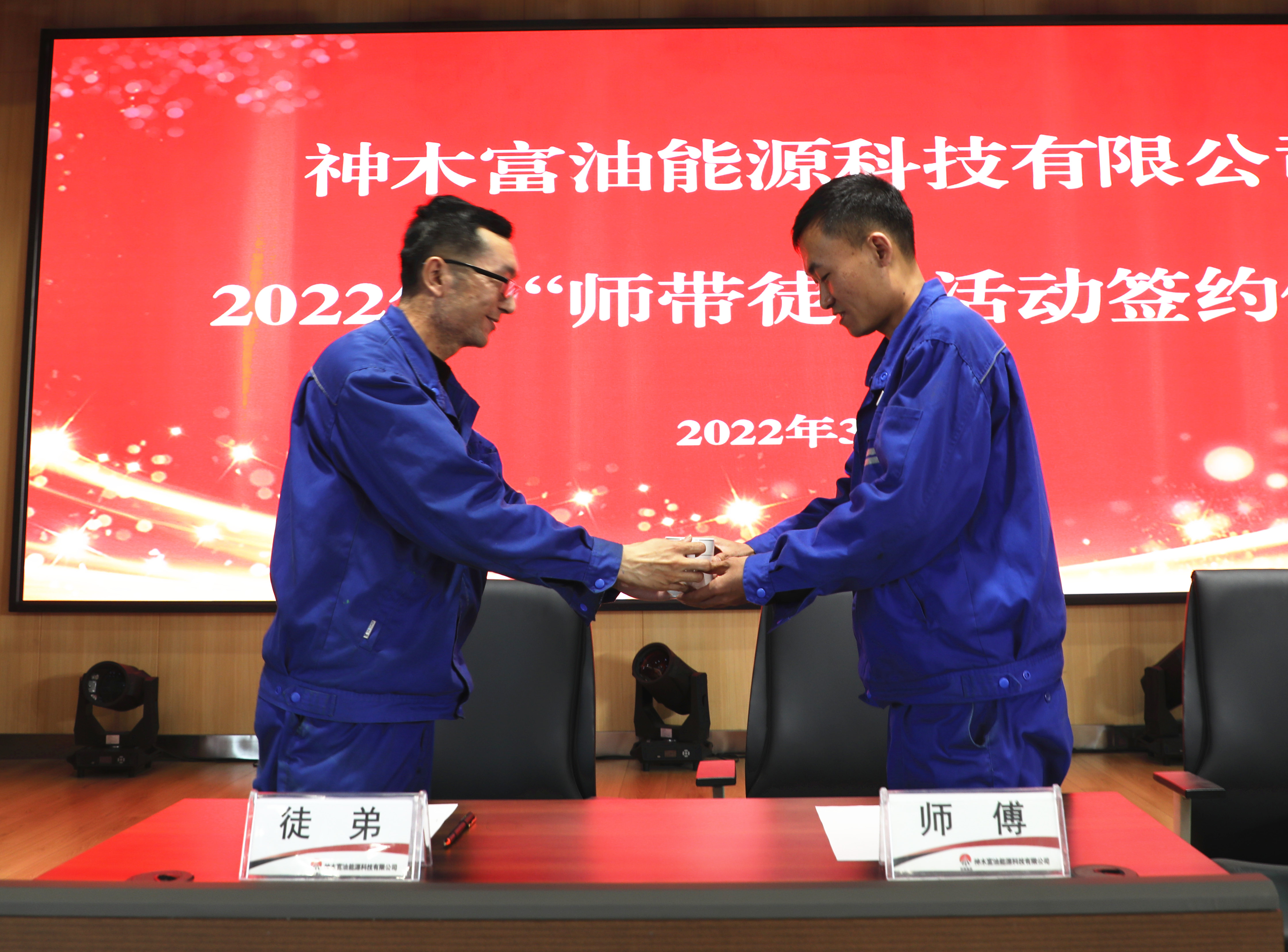 近日,神木煤化工富油公司舉辦了2022年“師帶徒”活動的簽約儀式,6名新員工與6名工作經驗豐富、技術優秀的師傅代表公司7個生產中心126對師徒簽訂了《師帶徒協議書》,形成了師徒結對關系。