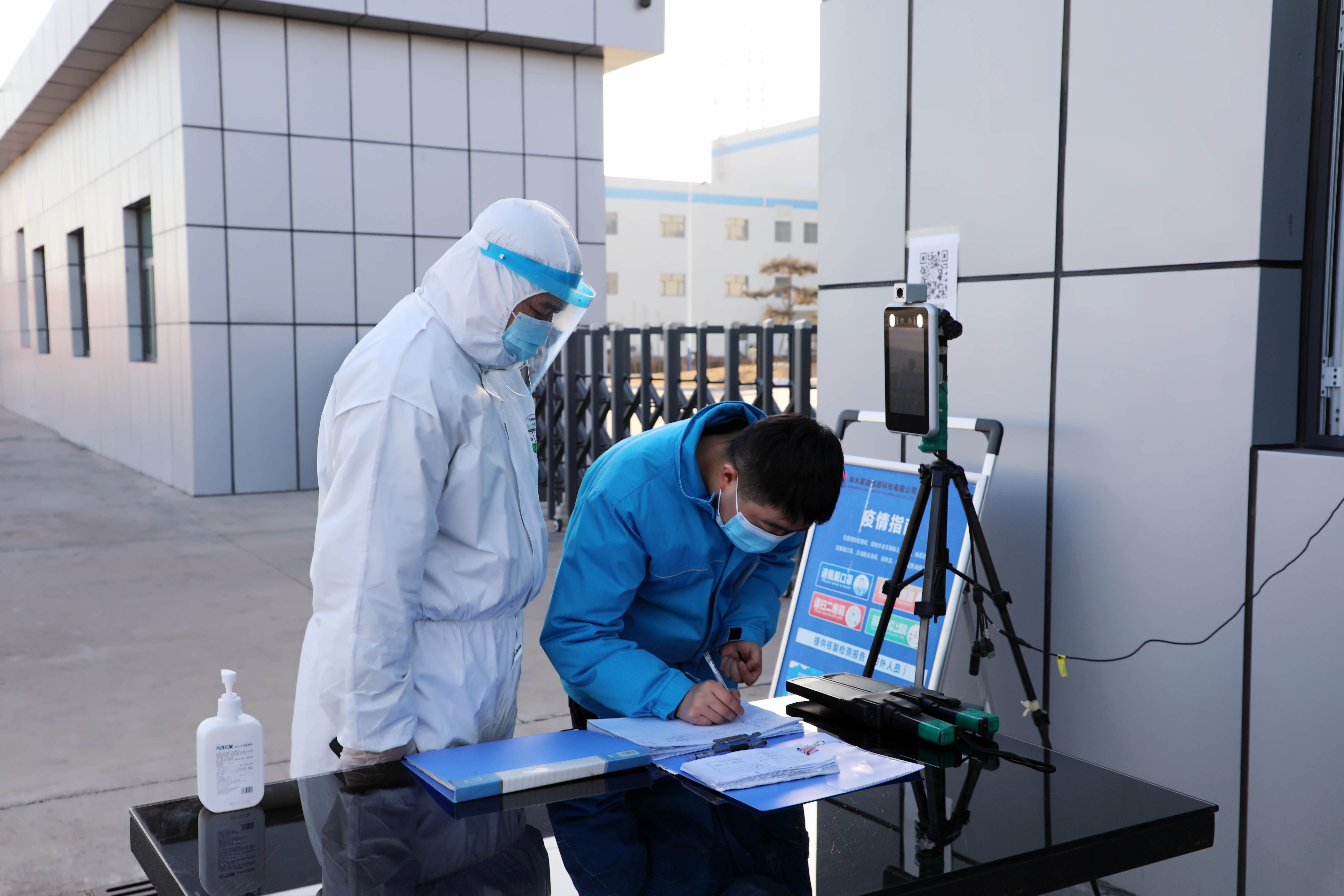 穿上防護服