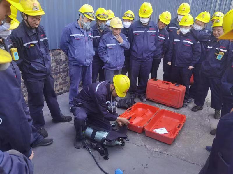近日,神木煤化工泰和公司組織應(yīng)急隊(duì)伍人員在焦化車間三平臺開展空氣呼吸器實(shí)操訓(xùn)練。